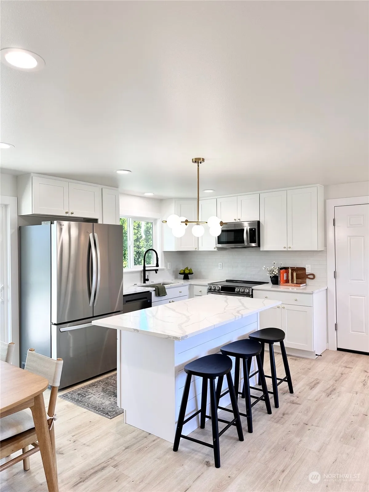 Welcome to this exquisite 3-bedroom home! Features include tiled bathrooms with radiant heating, a spacious deck, and a finished garage with cabinets for storage. Enjoy the convenience of new appliances, a heat pump for climate control, and a fenced backyard. The sleek kitchen boasts quartz countertops and an island, perfect for gatherings. With its open layout design, this home offers both comfort and elegance. Don’t miss out on this incredible opportunity!