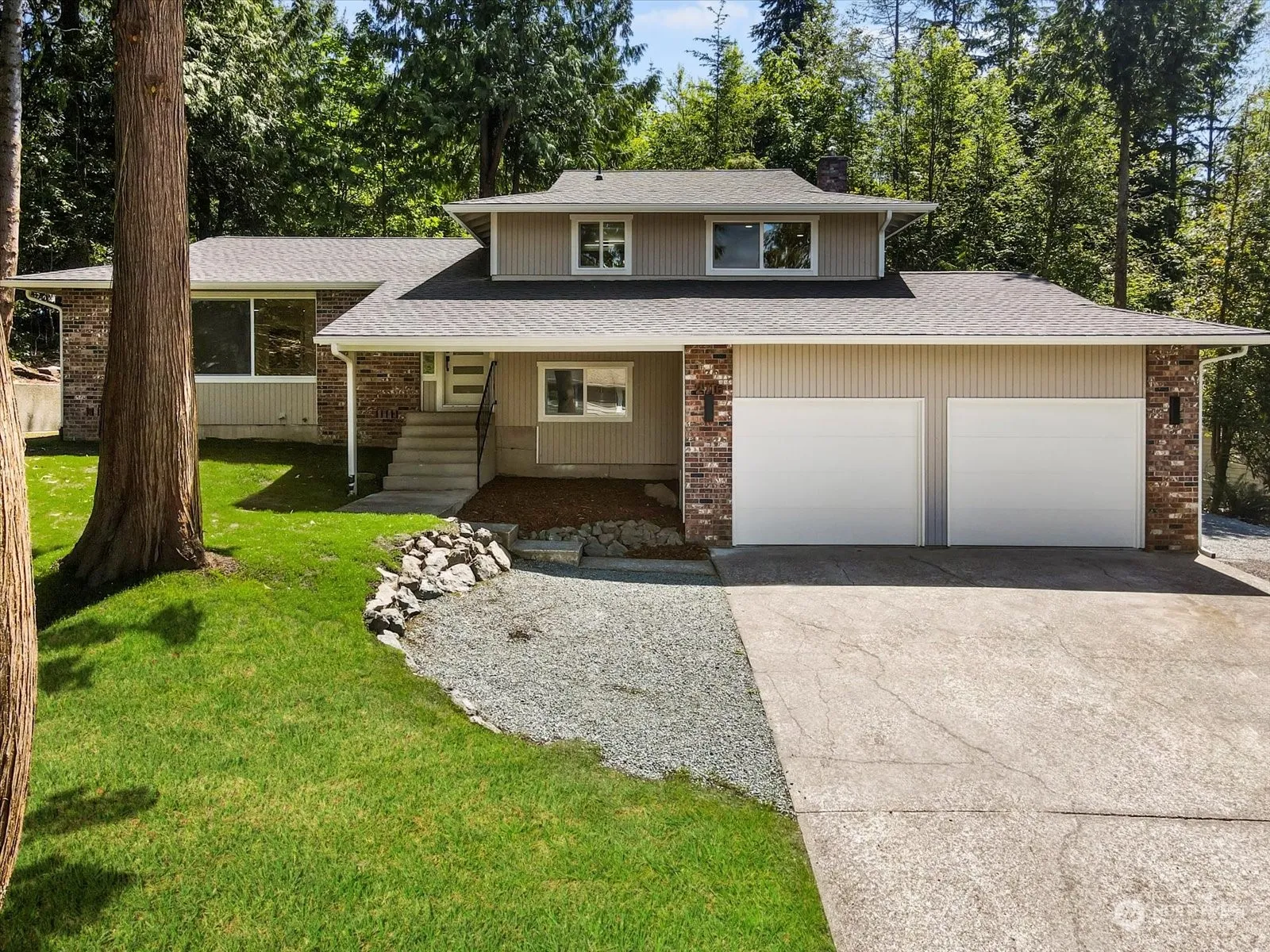 Welcome to your dream home! This fully remodeled house has been meticulously updated inside & out. Featuring NEW: roof, heat pump, windows, water heater, garage doors, fresh interior & exterior paint, luxury vinyl flooring, updated bathrooms. Elegant kitchen showcasing quartz countertops, custom cabinets & SS appliances. Enjoy the spacious living room, dining room & cozy family room, which includes real wood burning fireplace perfect for relaxing evenings. Upstairs, you’ll find 3 generously sized bedrooms. Peaceful backyard with nature scenery is perfect for unwinding. Additional amenities include convenient RV/boat parking & efficient A/C to keep you comfortable year-round. This move-in-ready home is waiting for you to make it your own!