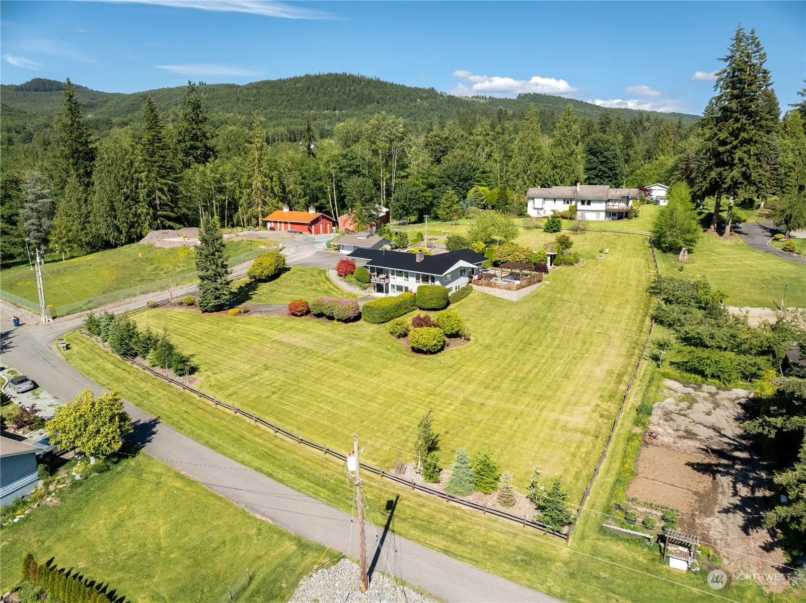 A one of a kind home located in desirable Conway neighborhood. Over an acre and a half of landscaped property, 3 bedrooms, plus office that could be used as a bedroom, 3 bathroom home with space for entertaining. Spectacular Westerly views capturing amazing sunsets and views of the mountains and sound. Detached garage and separate workshop/storage shed. RV/Boat parking. Property backs up to miles of trails and access to Lake Sixteen. Completely remodeled in 2021 with energy efficient windows and heat/cooling pump. Half a sport court for basketball and pickleball, includes brand new hot tub spa and sauna. Property is two parcels of land, with buildable possibility. RV/tiny home hookup.