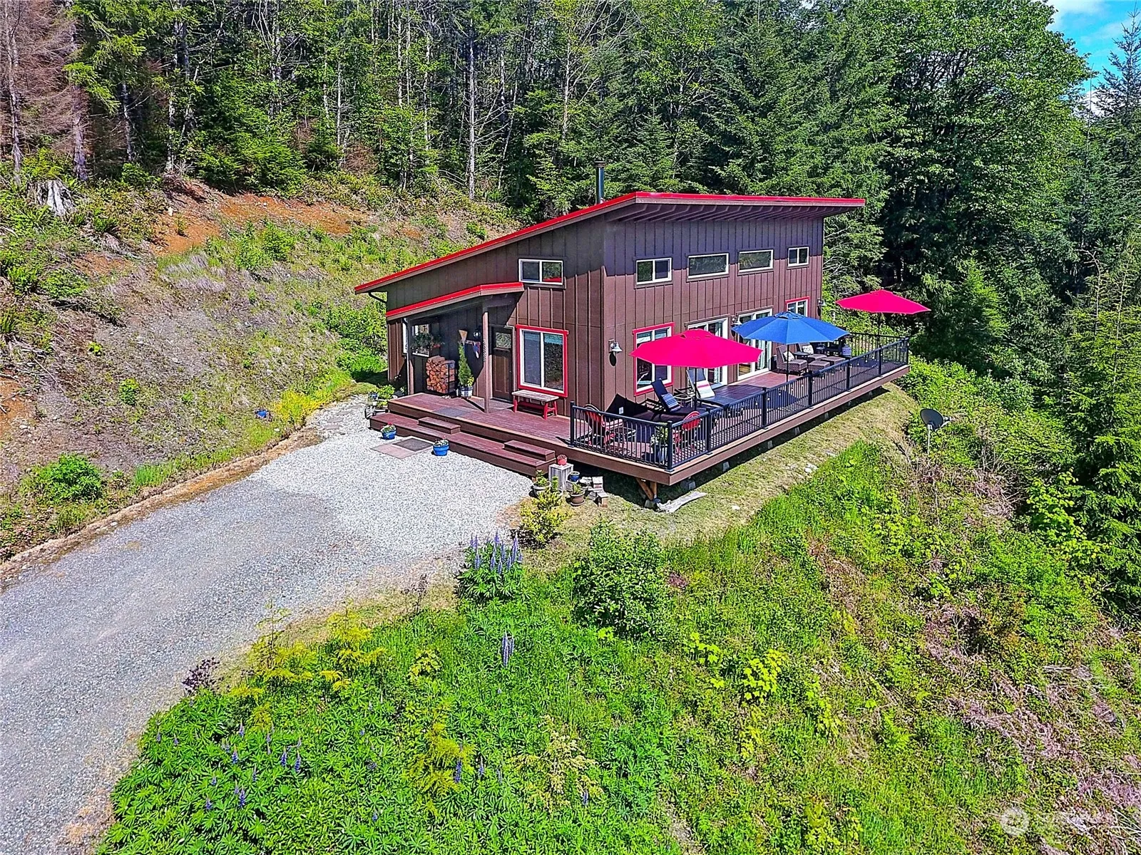Welcome to your lakeview hillside retreat! This custom 2 bed 2 bath home w/ loft & huge garage offers the perfect blend of cozy charm & breathtaking views of Lake Cavanaugh & Frailey Mountain. Bright living, kitchen, & dining space is illuminated by tall windows & soaring 16ft ceilings, flooded w/ natural light, and warmed by efficient Lopi woodstove. Woodshed outside. Two sliders lead out onto partial wrap-around 50’x10′ composite deck. Kitchen features SS appliances, granite counters, alder cabinets & walk-in pantry. Master bed boasts an en suite bath w/ large walk-in shower. Detached 28’x28′ garage offers ample room for lg vehicles, boat, etc. Convenient boat launch, club house, pickleball courts, & top-rated fire dept just 1 mile away.