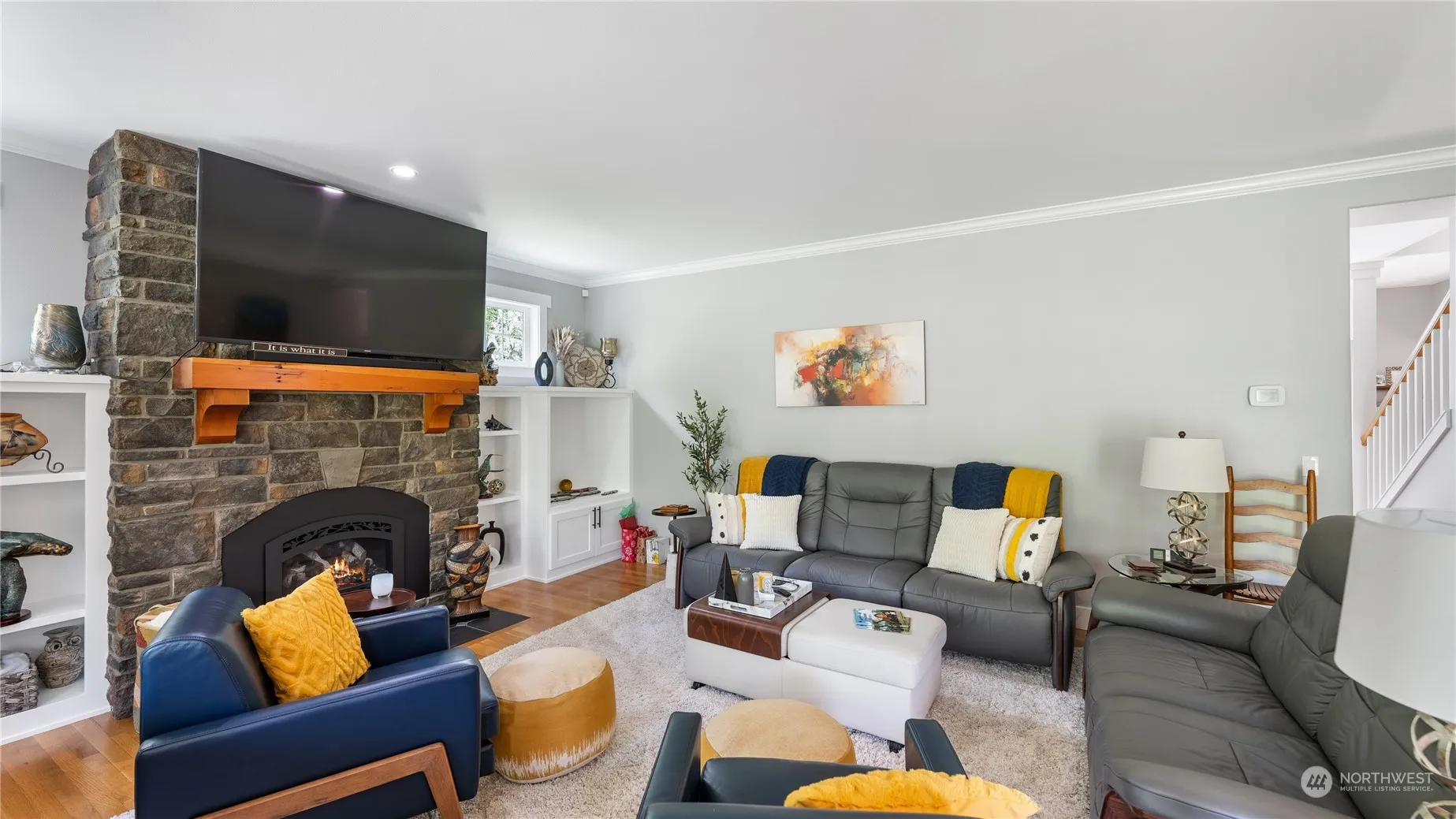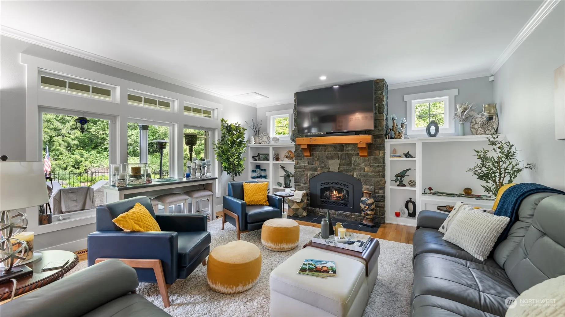 Updated in 2023, discover the serenity of this secluded custom home, nestled on nearly 2 acres, with convenient access to I-5 & Hwy 20. Unwind by the stone fireplace adorned with built-ins in the inviting living room. The open kitchen boasts a spacious island & elegant quartz countertops. Retreat to the primary bedroom featuring a vaulted ceiling & a luxurious ensuite with a deep soaking tub. Upstairs, find additional bedrooms & a bonus room illuminated by charming dormered windows. Step outside to the covered back patio and enjoy the beauty of the meticulously landscaped grounds. With RV parking & garages, including one with a workshop and pellet stove heating, this home offers both practicality and charm.