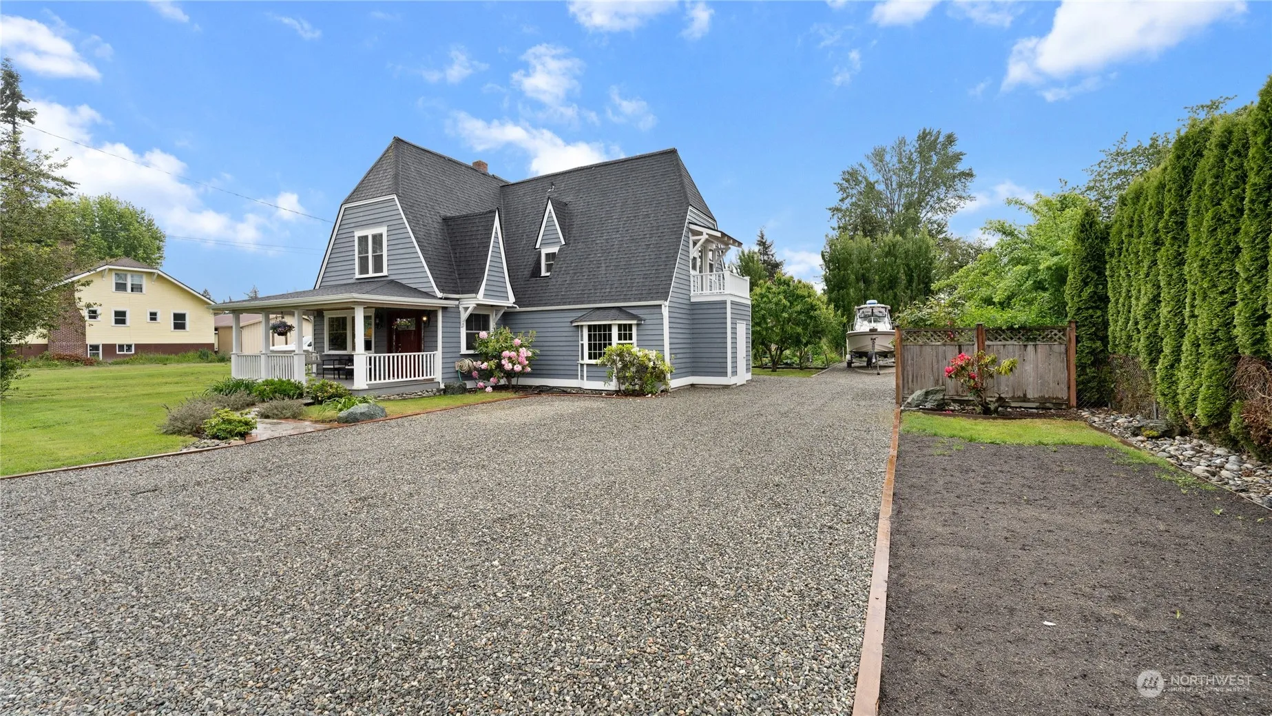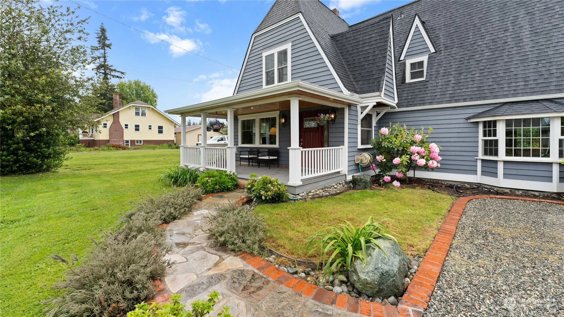 This [1941 2-STORY CHARMER] is fully updated & is everything you have been looking for – Beautiful NEW HARDWOOD FLOORS upon entry, light & bright living room, leading into your UPDATED KITCHEN w/ all new cabinets, countertops, SS appliances & tile backsplash. Addtl spacious bonus room on main great for entertaining. Upstairs you’ll find 2 bedrooms along w/ a shared 3/4 bath & primary suite features ensuite full bath w/ tile surround shower. Plenty of extra storage room in the attic. ALL NEW ELECTRICAL & PLUMBING. NEW TREX DECKS front & back. All NEW CEDAR SIDING. NEWER EXTERIOR PAINT. Outbuilding for tools & toys + large covered carport. Quiet dead end street, great location within walking distance to town. Easy access to I-5. Welcome Home!