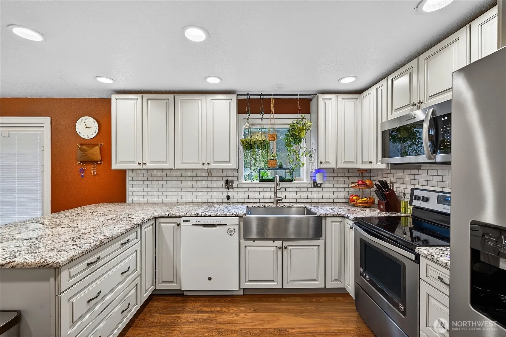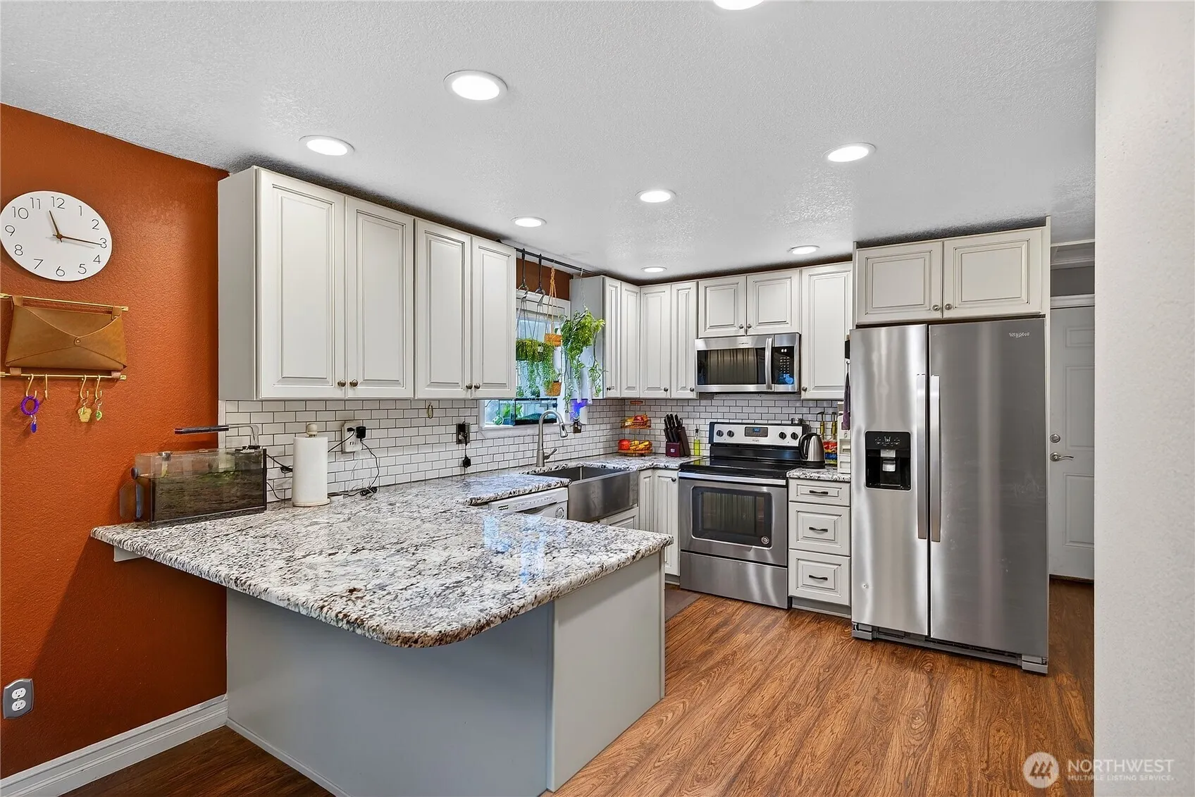 Welcome home to this inviting Oak Harbor property offering comfort, space, and everyday functionality. The light-filled kitchen features granite countertops, white cabinetry, stainless steel appliances, and a breakfast bar that flows seamlessly into the dining area—perfect for both daily living and entertaining. The open-concept living room centers around a cozy brick fireplace, creating a warm gathering space year-round. Upstairs, you’ll find a spacious primary suite with serene views and ample storage, along with additional bedrooms that provide flexibility for guests, office space, or hobbies. Thoughtful updates and clean finishes throughout make this home move-in ready. Step outside to a fully usable backyard with plenty of room to relax, garden, or host gatherings around the fire pit. The covered front porch adds charm and a welcoming first impression, while the attached garage and wide driveway offer convenience. Ideally located near NAS Whidbey, parks, schools, and everyday amenities, this home delivers both lifestyle and value in one of Oak Harbor’s most accessible locations.