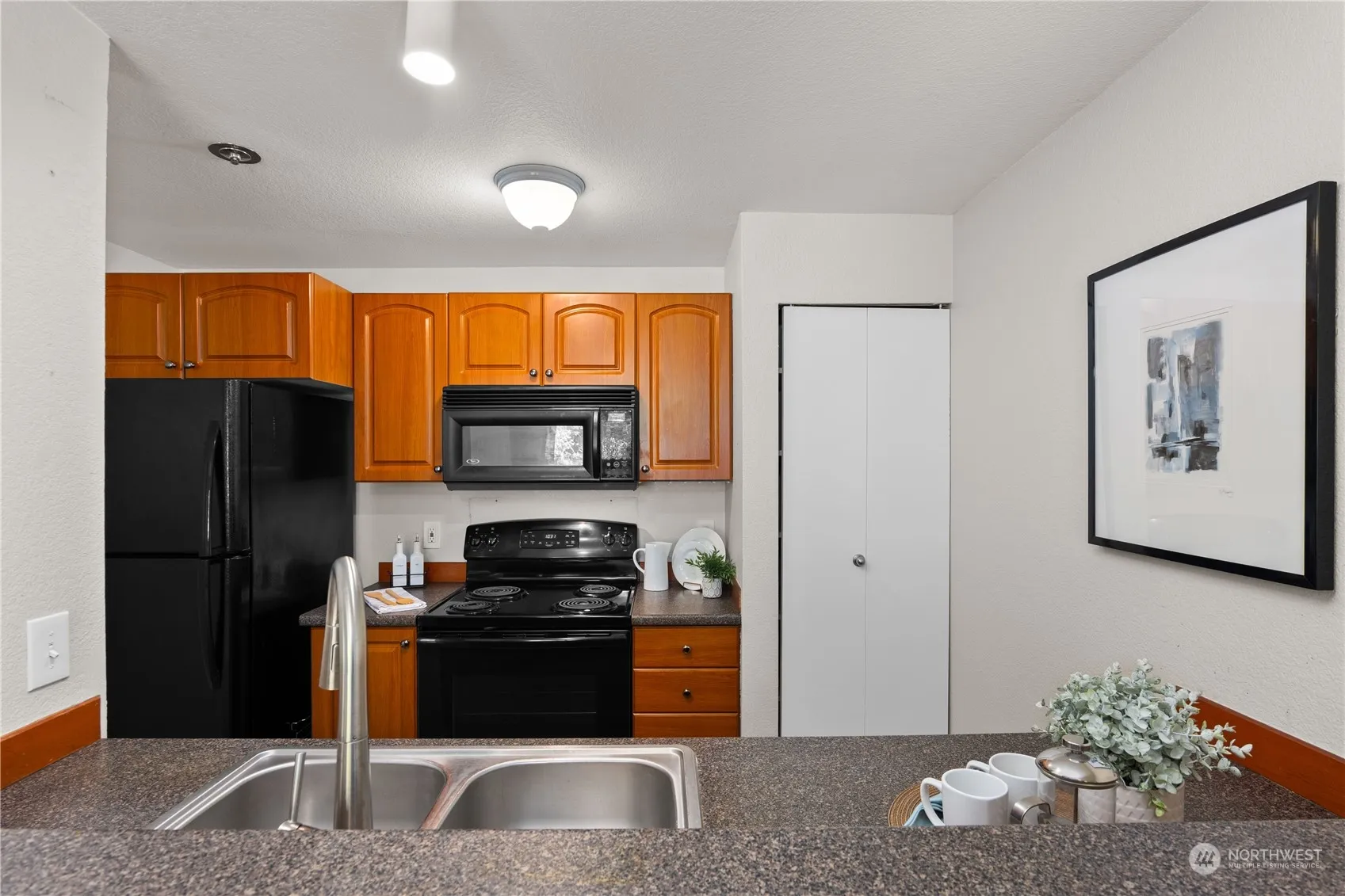 Peaceful, convenient living is yours in this fantastic greenbelt view unit at Balaton! Set moments away from dining, shops & light rail opening soon, this community offers a serene wooded setting with resort-like amenities! Take in views of green surroundings from this super private 2-bed condo, outfitted with a kitchen w/ eating bar, a wood-burning fireplace, full-size laundry & private deck w/ an extra storage unit. Both bdrms are generously sized & share a roomy full bath. Designated carport parking included! Soak up the sun this summer at the outdoor pool, enjoy the hot tub & sauna, work out in the gym or mingle w/ neighbors in the clubhouse. Prime location close to everything + pet friendly with no rental cap!