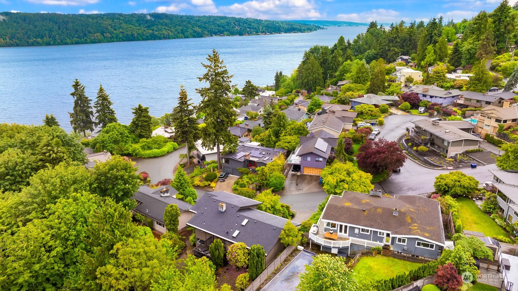 An Architectural treasure w/majestic views of Lk WA from both levels of this custom home sited in a coveted+hidden neighborhood of Lake Forest Park w/buried powerlines. Nestled in nature the NW Modern style is celebrated in its relationship w/the outdoors w/walls of windows that highlight mature verdant landscape. Enjoy watching float planes, boats+birds, and a natural creek through the lower yard. Vaulted ceilings, floor-to-ceiling fireplace, original hardwood floors. Extensive decks off the living room, Primary en-suite & large open kitchen create a beautiful flow inside & out. Move-in ready w/many new improvements. Oversized 2 car garage, close to shopping, dining…Eastside/Seattle, beaches+trails. A truly unique home & in-city retreat!