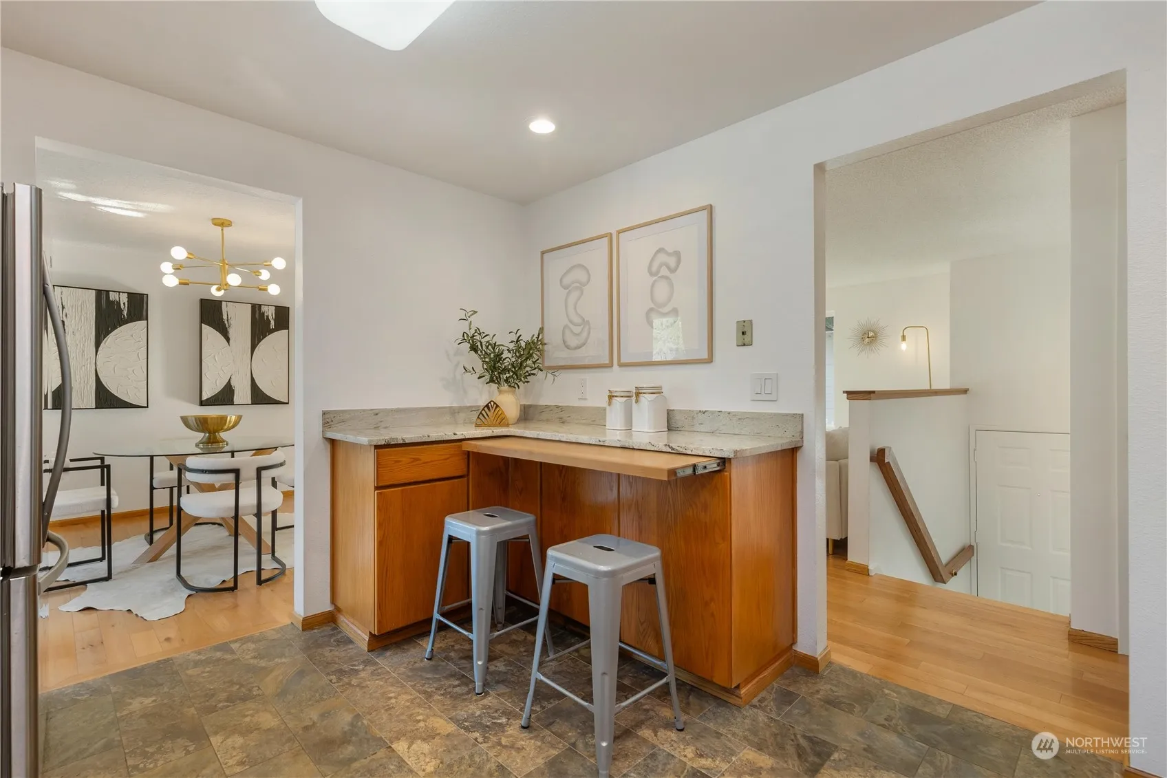 This beautifully reimagined Lake Forest Park home offers a spacious interior, a large yard & many amenities. Fresh paint & updated lighting create a welcoming atmosphere. The main level features 3 generously sized bedrooms, 2 baths, & wide-plank hardwood floors. A stunning floor-to-ceiling stone fireplace anchors the living & dining areas, and leads to a spacious Trex deck, perfect for entertaining. The lower level has a large family room & 4th bedroom/office, & is also ideal for creating an additional income stream w/ an ADU. Enjoy the convenience of a cul-de-sac location, a 3-car garage, & owned solar panels that yielded a $3,360 rebate last year. Brand NEW furnace! Plus, experience easy commuting w/ nearby 185th light rail station.