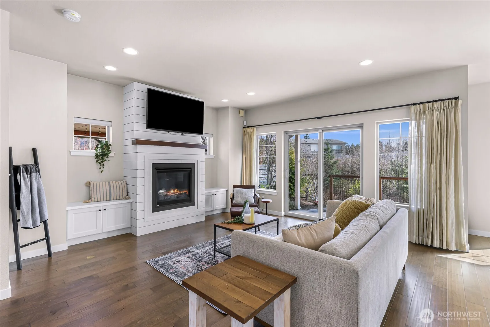 Beautiful NW Craftsman solar home tucked on a fully fenced, landscaped greenbelt lot with standout upgrades throughout. Thoughtfully designed with a warm, elevated feel, this home blends comfort and style in all the right ways. The gourmet kitchen is a true centerpiece featuring a dual-fuel KitchenAid range, quartz countertops, stainless farmhouse sink, under-cabinet lighting, soft-close cabinetry, and exceptional storage that keeps everything within reach but out of sight. Engineered wood floors run seamlessly throughout, including the stairs and second floor, adding to the home’s cohesive, high-end feel. Stay comfortable year-round with a mini-split heat pump and A/C in three zones, plus enjoy the convenience of remote-control window coverings and an electric car charger. The primary suite offers a spa-like escape with a freestanding soaking tub and bidet, while the living area showcases a shiplap fireplace with built-in bench seating for both style and function. Outside, the covered front porch with solid wood beam accents and metal roofing detail creates instant curb appeal, while the large covered back porch is perfect for easy entertaining or unwinding at the end of the day. Meticulously maintained and move-in ready this is one you don’t want to miss.
