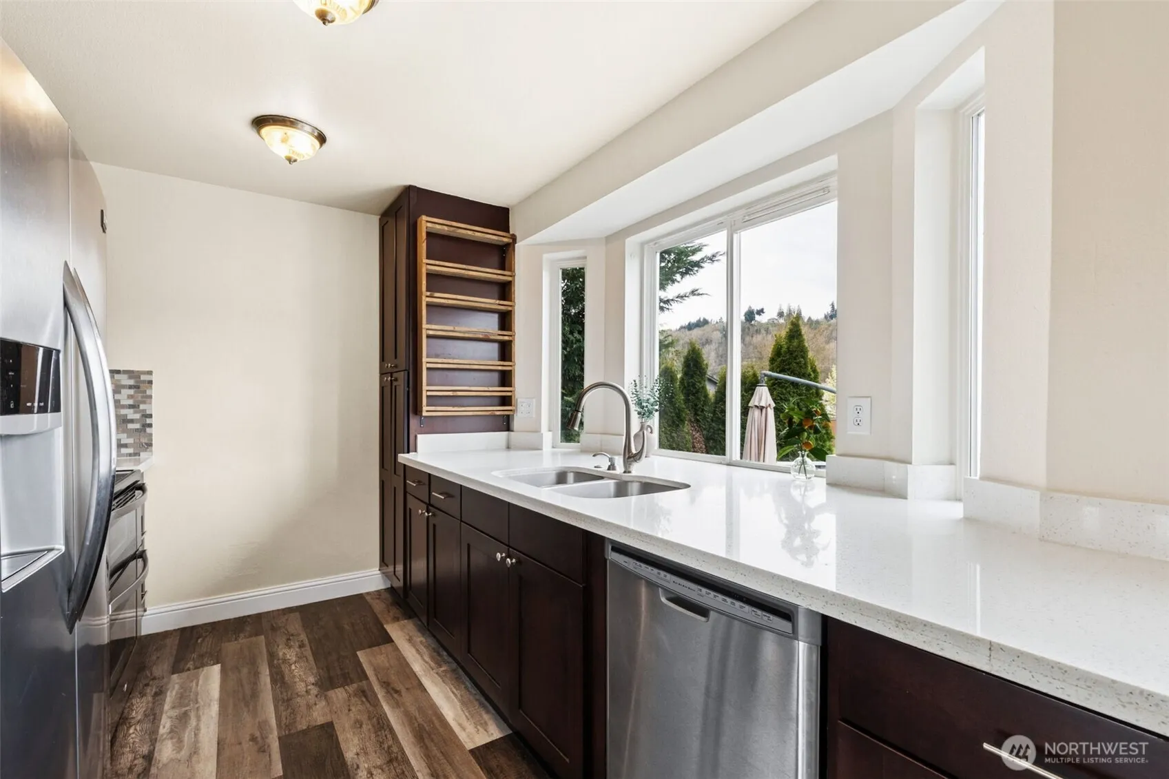 Welcome home to this beautifully updated 1,750 sq ft tri-level in the heart of Algona! Nestled on a .28-acre lot, this 3-bedroom, 1.75-bath gem perfectly blends modern upgrades with cozy comfort. Step inside to discover a renovated kitchen featuring gleaming quartz countertops, a stylish tile backsplash, and sleek stainless steel appliances, all bathed in abundant natural light. The inviting family room is the perfect gathering space, boasting elegant French doors that open to your private backyard area. Entertain with ease in the expansive, partially fenced yard. Highly practical floor plan including an attached 2-car garage, an extensive driveway, and dedicated RV parking. This move-in ready home offers the perfect Pacific Northwest lifestyle. Don’t miss out!