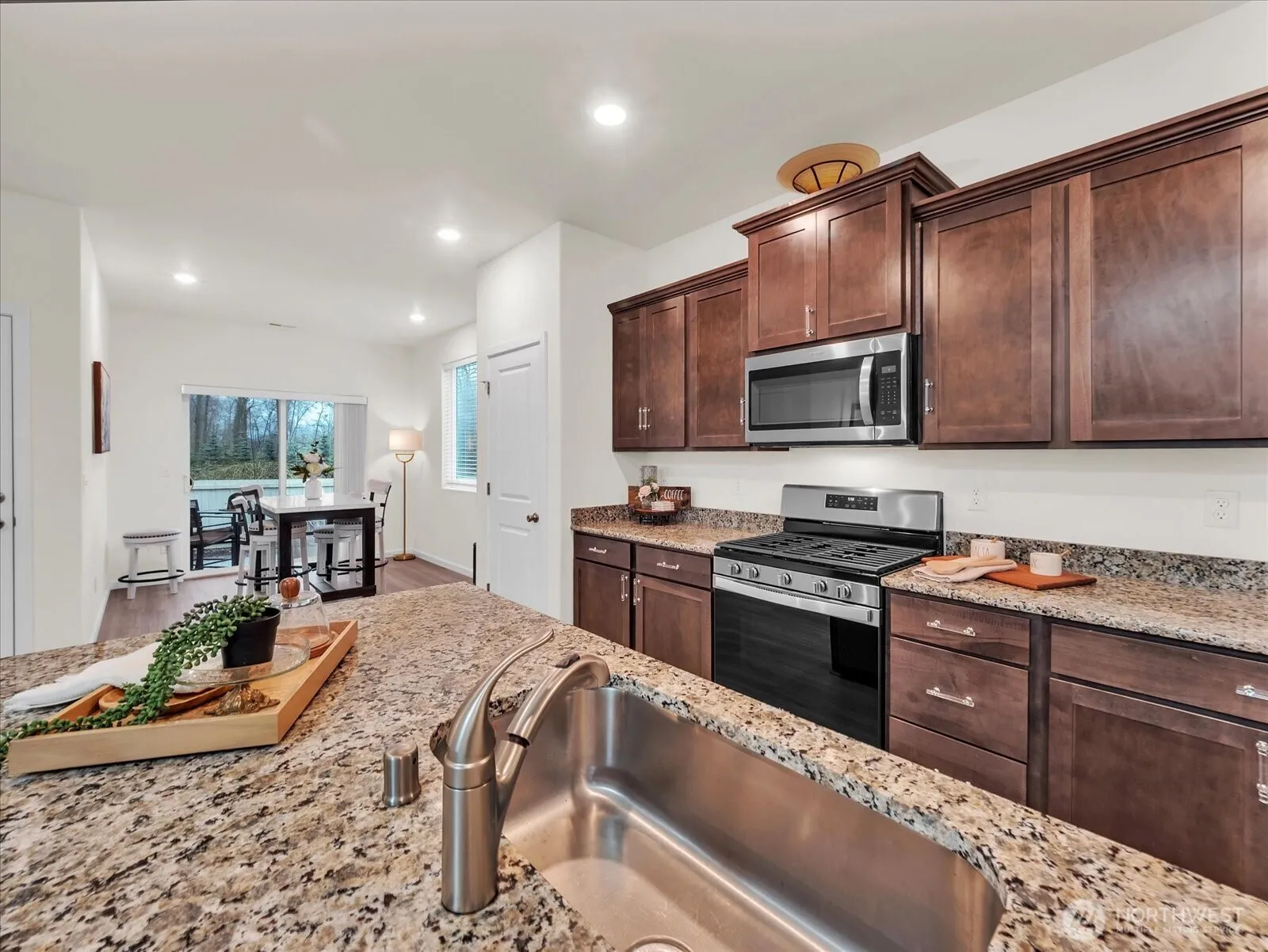 ***VA Buyer’s Welcome*** Discover refined modern living in this pristine 2022-built two-story home in Puyallup’s sought-after Connell Park community. Spanning ~1,800 sq ft, this 3-bedroom, 2.5-bath gem delivers thoughtful design and premium finishes from the first step inside.The open-concept main level centers on a bright, functional kitchen boasting stainless steel Whirlpool® appliances, gleaming granite countertops, sleek cabinetry, and durable luxury plank flooring that flows throughout. Natural light floods the living and dining spaces, opening seamlessly to a peaceful covered patio—perfect for relaxed mornings or effortless entertaining.Upstairs, the generous owner’s suite offers a true retreat with an oversized walk-in closet and spacious vanity. Two additional bedrooms, a full bath, and a flexible loft provide room for guests, or quiet work. Practical touches include a finished garage for storage and a fully fenced backyard for privacy and play.Washer and dryer are available for purchase, ready to move right in.This isn’t just a house; it’s a lifestyle upgrade waiting for you. Schedule your showing today and envision the life you’ve been dreaming of.