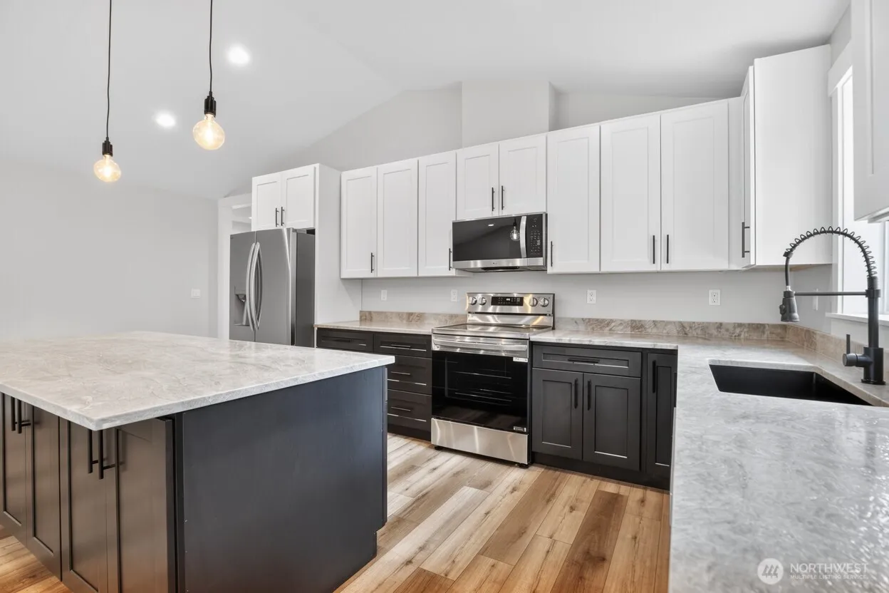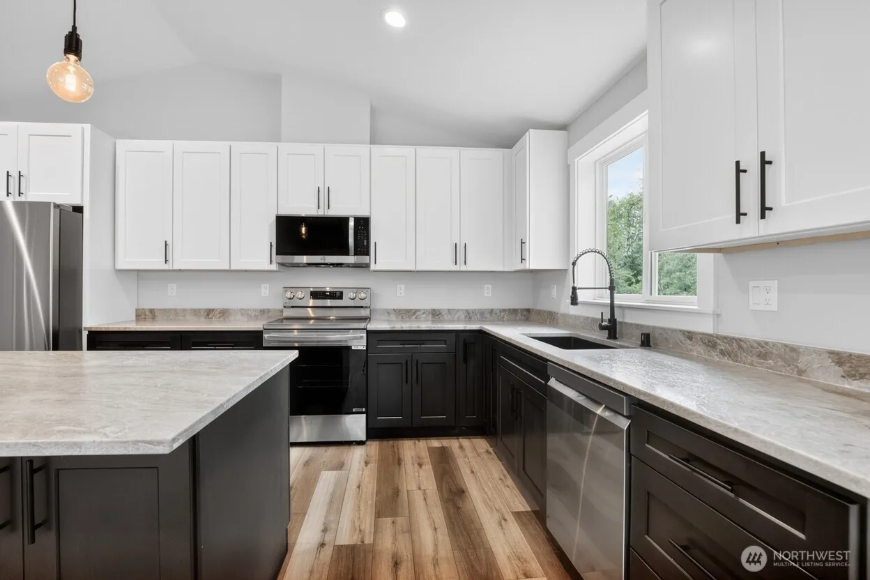 Brand New Home in Ocean Shores! Tucked into a quiet residential neighborhood just one block from the Community Club Outdoor Pool & less than a mile from the sandy shoreline of the Pacific Ocean, this newly constructed home offers the perfect blend of coastal lifestyle & modern comfort—ideal as a full-time residence or beach retreat. Designed with quality & efficiency in mind, the home features a bright, open Great Room with vaulted ceilings, an electric fireplace & a ductless mini-split HP for year-round heating & cooling. The seamless open-concept layout creates an easy flow between living, dining, & kitchen spaces. The kitchen is beautifully appointed with quartz countertops, a spacious island with bar seating, abundant cabinetry, & a stainless steel appliance package—delivering both style & functionality. The Primary Suite provides a private escape with a spacious walk-in closet, dual vanity sinks, & a step-in shower with custom glass door. A guest bedroom & full bathroom are situated on the opposite side of the home, offering separation & comfort for visitors. A dedicated laundry room adds convenience. Additional highlights include an oversized one-car garage with wiring in place for an EV charging plug. The backyard is fully fenced with 6-foot privacy fencing, creating a secure & comfortable outdoor living space. Photos are of a previously built home with the same floor plan; finishes & details will vary. Estimated completion is the end of March 2026.