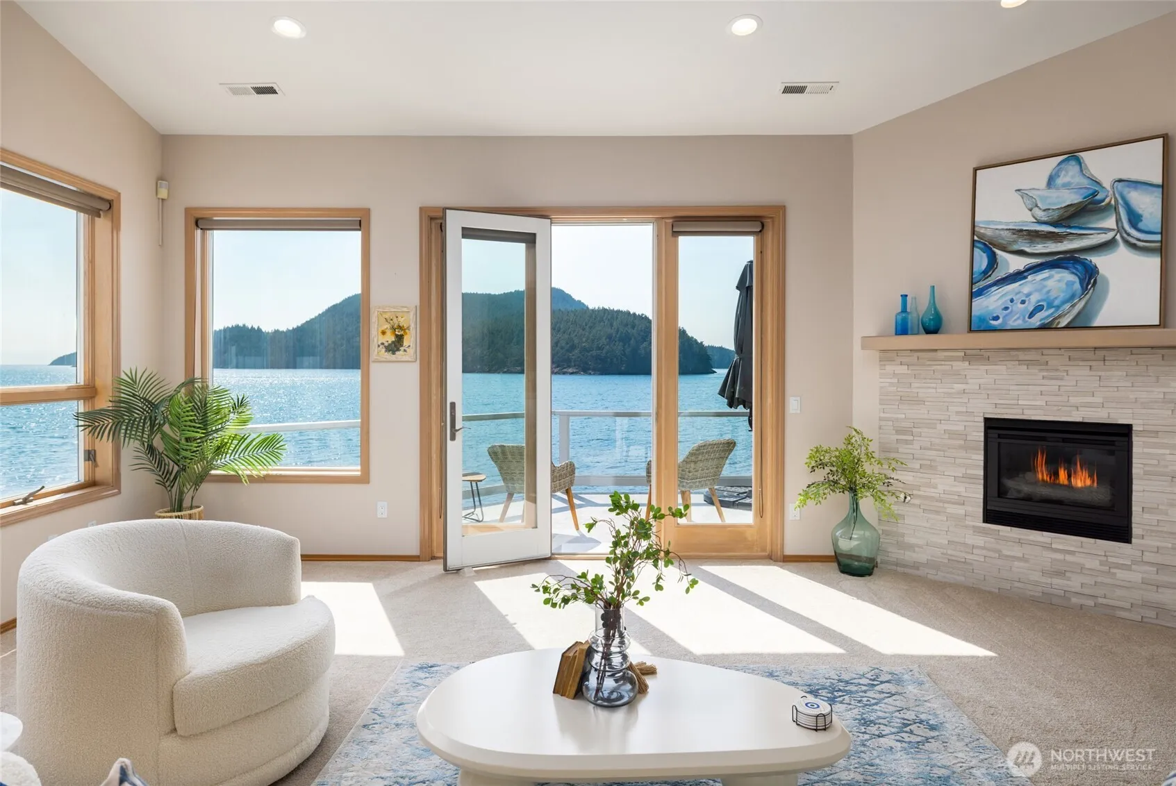 Waterfront Living large! Remodeled in 2019, this exquisite 2-bedroom condo by Burrows Bay offers unending views, sunsets, wildlife and many special features. Quartz countertops, LED lighting, skylights, new flooring and a lot of extra storage. With nine-foot ceilings, a private deck with storage, enclosed garage (with locked storage unit) and an additional outside parking space. Skyline amenities include tennis and pickle ball courts, waterfront parks, and clubhouse. The best Anacortes has to offer! These units don’t come on the market often, don’t miss this opportunity!