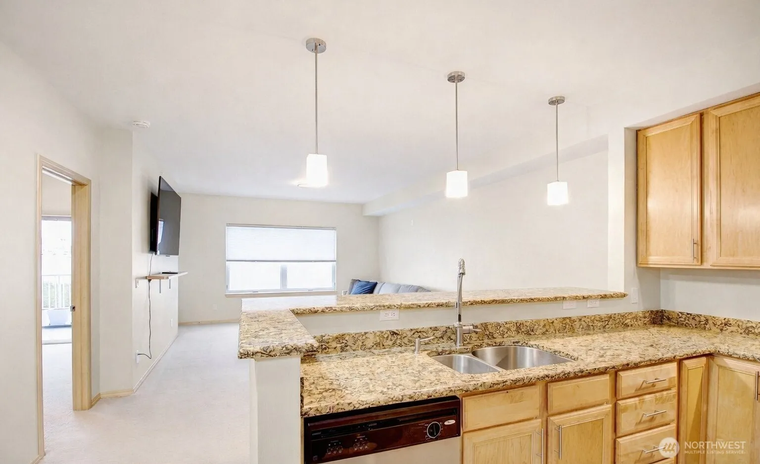 Seller offering $5k credit at closing to buy rate down or go towards new paint. Exceptionally upgraded, move-in-ready 950 sq ft top-floor condo within walking distance to Whatcom Community College in Bellingham—ideal for campus living, long-term value, or investment potential. No rental cap at this complex. This quiet 1-bedroom, 1 full bath unit includes a versatile bonus room ideal for a home office or storage, a dedicated utility room with in-unit LG smart washer and dryer with steam, and a walk-in closet with custom built-in shelving and brushed nickel hardware. The renovated interior features granite countertops in the kitchen, bathroom, and vanity, plus a butcherblock laundry counter. The kitchen is equipped with premium stainless steel appliances including a GE 6.6 cu ft double convection range, Samsung 22 cu ft French-door smart refrigerator, and Pacific Tru-Steam hood with auto steam-clean. Smart and energy-efficient upgrades include a Mysa smart thermostat, Rheem 38-gallon water heater, LED lighting, and Levolor honeycomb cellular shades. Modern finishes include designer BEHR Dynasty paint, brushed nickel fixtures, screwless outlets and switches, quiet Panasonic Whisper ventilation fans, WaterRidge dual-flush toilet, and LED anti-fog mirrors. Enjoy a west-facing deck with access from both the living room and bedroom, offering privacy, quiet living, and sunset views. Two wall-mounted 65” 4K Google smart TVs, two deeded covered parking spaces, turnkey opportunity.