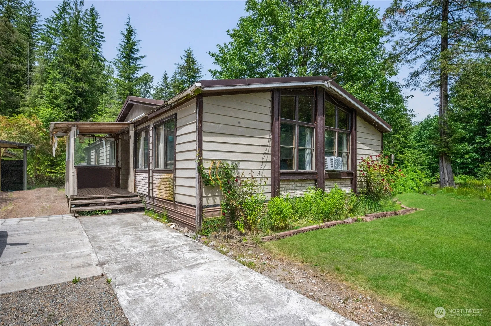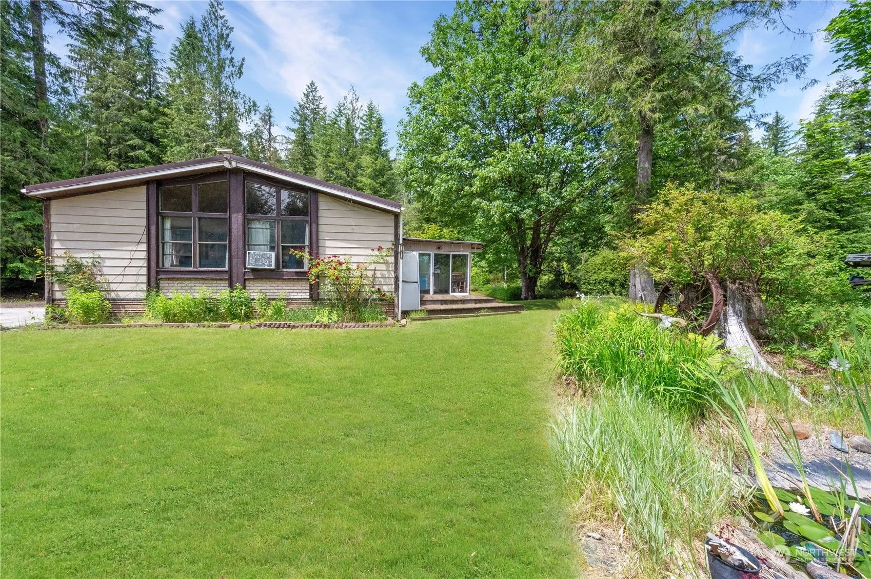 Own your own private oasis ready to call your own. 3 bedroom 2 bathroom double wide manufactured home situated on 6.47 acres with stunning mountain views. Home site features a barn/storage area, a shop, and a pond. Cozy up to the wood stove on the cooler winter evenings. Enjoy your morning coffee on your oversize back deck while enjoying nature. Plenty of garden space with your own greenhouse. Bonus room and enclosed back patio area are a nice bonus. Plentiful private well. Close to mountain biking trail and breathtaking views. HOA has a private river with community access trail right in your back yard. Home and property are being sold as-is.