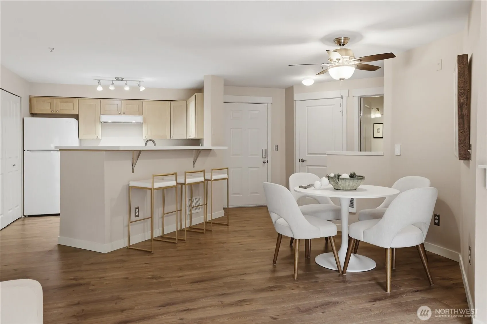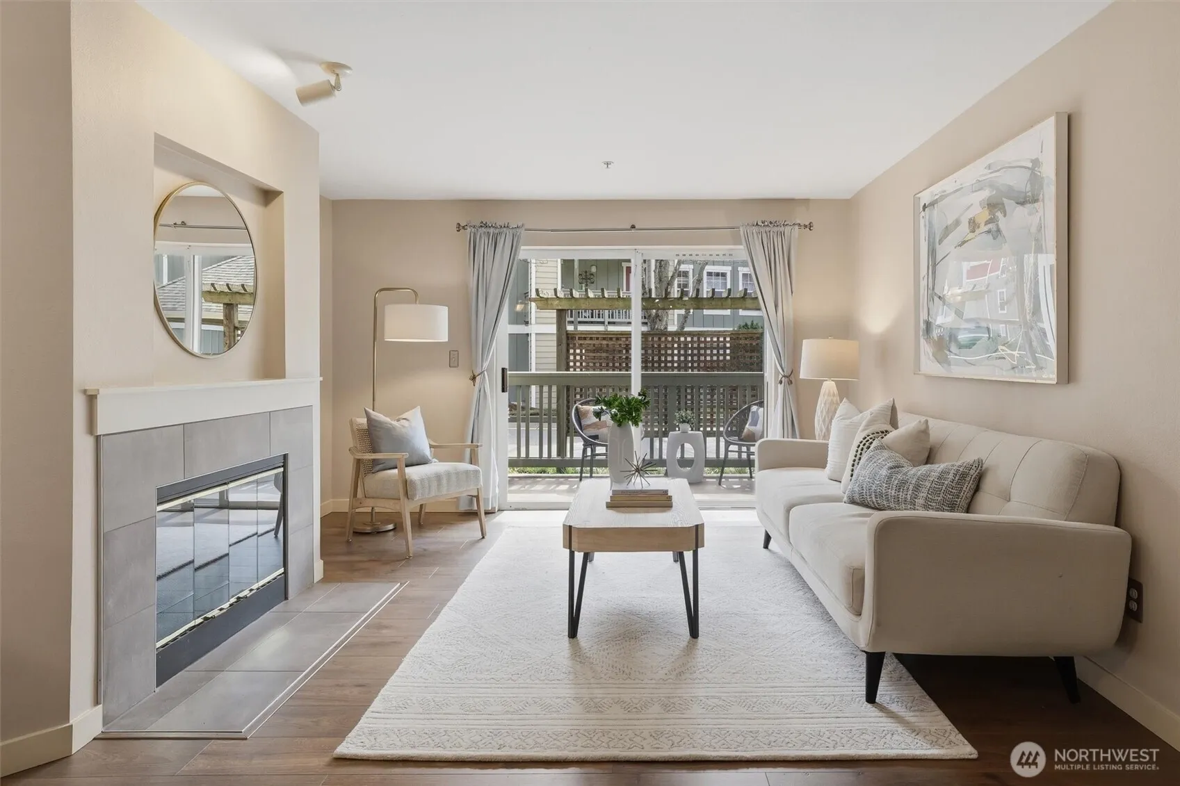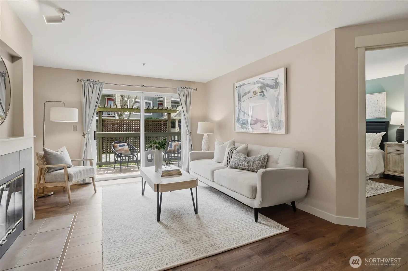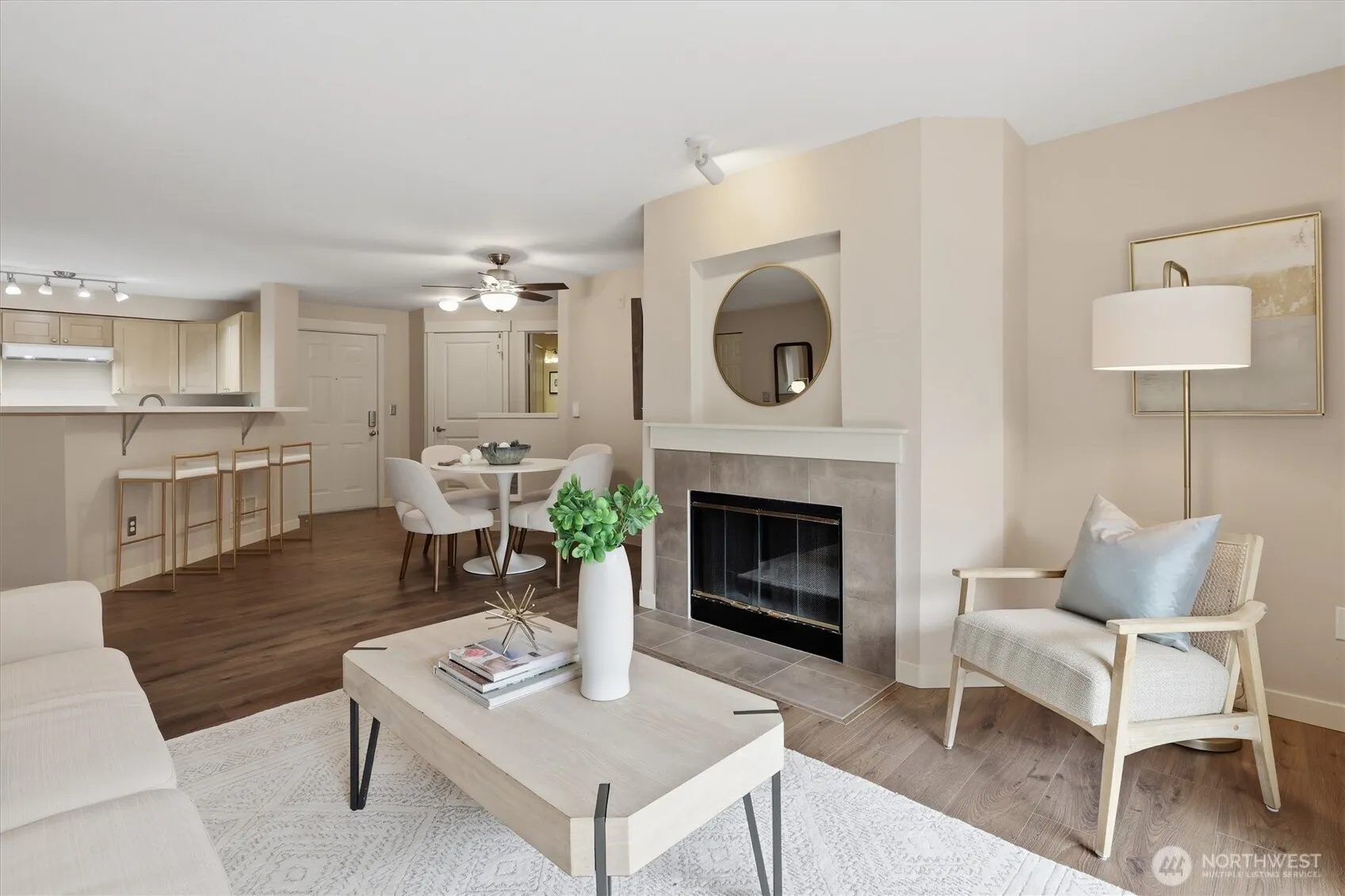 Your gateway to an active lifestyle starts with this comfortable 2 bedroom, 2 bathroom home. Rare and desirable no-step entry and interior. Open floor plan with kitchen, dining and living room at the heart. Primary bedroom suite includes generous ensuite with walk-in shower, two closets and patio access. Secondary bedroom with walk-in closet and adjacent full bath. The home has been updated with newer shaker cabinets, quartz countertops, and newer white appliances. Luxury vinyl floors throughout make cleaning a breeze. Full size laundry machines conveniently located inside the condo. Wood-burning fireplace and ceiling fan keeps it cozy or cool. Large storage closet off of patio. Rock solid HOA with impressive reserves and onsite maintenance. Private, secured, covered parking spot in garage. Community features pool, spa, fitness, garden space and clubhouse. Two pets per unit. Rental cap not met. Enjoy the nearby Kenmore paddle park on Lake WA and tons of trails. Quick to Burke-Gilman, breweries, cafes and shops. Easy commute to UW Bothel and beyond with nearby park n’ ride.