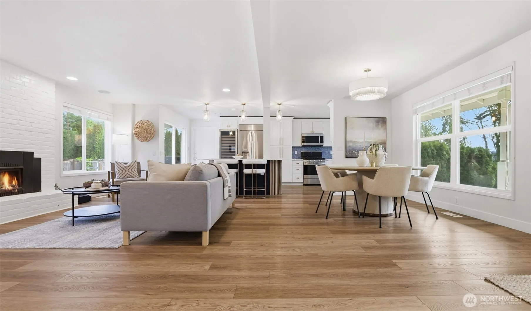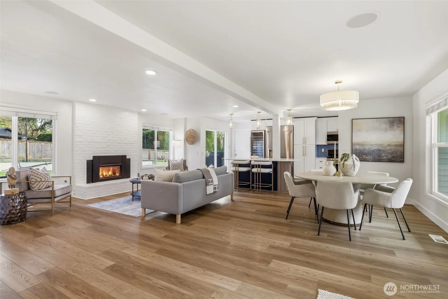 Step inside to a beautifully updated main level designed for modern living and effortless entertaining on a spacious 17,700sq ft lot. The renovated kitchen anchors the home with fresh finishes and great flow, complemented by new flooring throughout and integrated ceiling speakers on both levels and outdoors. A main-level flex room adds versatility—ideal as a guest room, office, or home gym. Upstairs, you’ll find 4 bedrooms, including a serene primary suite with a fully updated, light-filled bath enhanced by new skylights. Every bathroom has been stylishly remodeled, creating a cohesive, modern feel throughout the home. Over $350K in thoughtful upgrades elevate the property: new roof, gutters, exterior paint, garage doors, updated electrical panel, and added A/C for year-round comfort. And then… the backyard. A true showstopper and entertainer’s dream. Fully fenced, flat, and completely reimagined with turf, a sport court, putting green, spacious patio, grilling area, and outdoor kitchen. New irrigation and landscape lighting add both function and ambiance. Located on a quiet, walkable street near Medina Park, Medina Elementary, the beach, and Overlake Country Club—within the award-winning Bellevue School District. Turnkey, stylish, and ready for modern living.