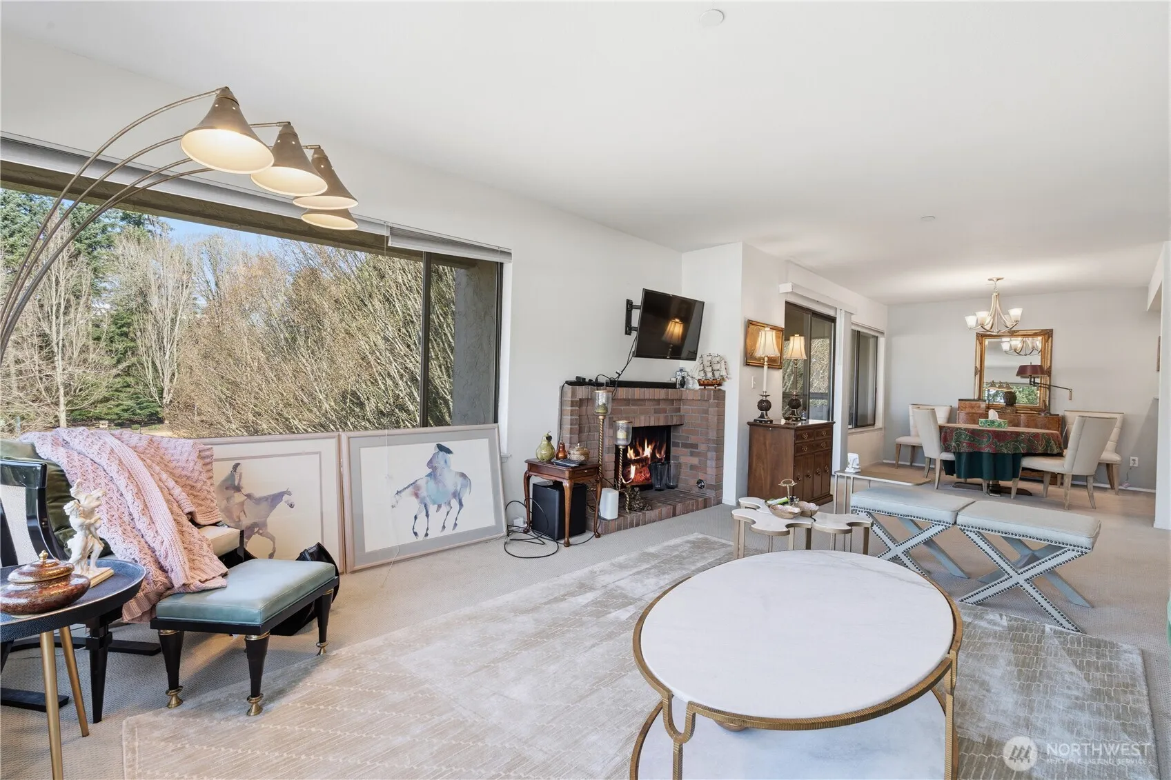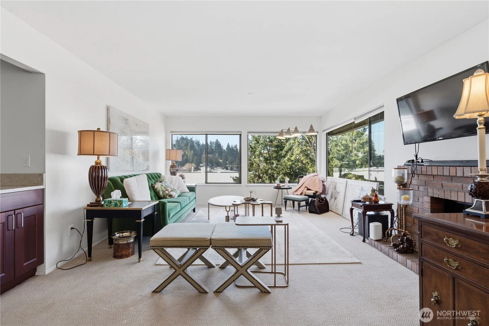 Located in the heart of Old Bellevue, this top-floor corner Penthouse perfectly blends privacy, natural views, and urban convenience. Overlooking Wildwood Park with glimpses of Lake Washington, it offers a serene retreat right in the city center. Bright and airy, the home features large windows that fill the space with natural light. The living room includes a cozy fireplace and opens to a private covered balcony, providing a peaceful outdoor space to enjoy greenery year-round. The kitchen is thoughtfully designed with ample cabinetry, a convenient pass-through window, and a sink that overlooks the dining area, combining style and functionality. The spacious primary bedroom offers dual closets and a private ensuite, with both bedrooms enjoying partial water views. The second bedroom and full guest bath provide flexible space for guests, office, or multi-purpose use. Additional features include in-unit laundry and a seperate storage room. This unit comes with two dedicated underground parking spaces, a rare amenity in this area, while the building provides secure entry, a well-maintained lobby, and elevator access. With a Walk Score of 89, residents enjoy easy access to parks, Meydenbauer Bay, public transit, and downtown Bellevue’s shopping and dining destinations. Combining prime location, views, and value, this top-floor corner unit is a standout opportunity in today’s market.