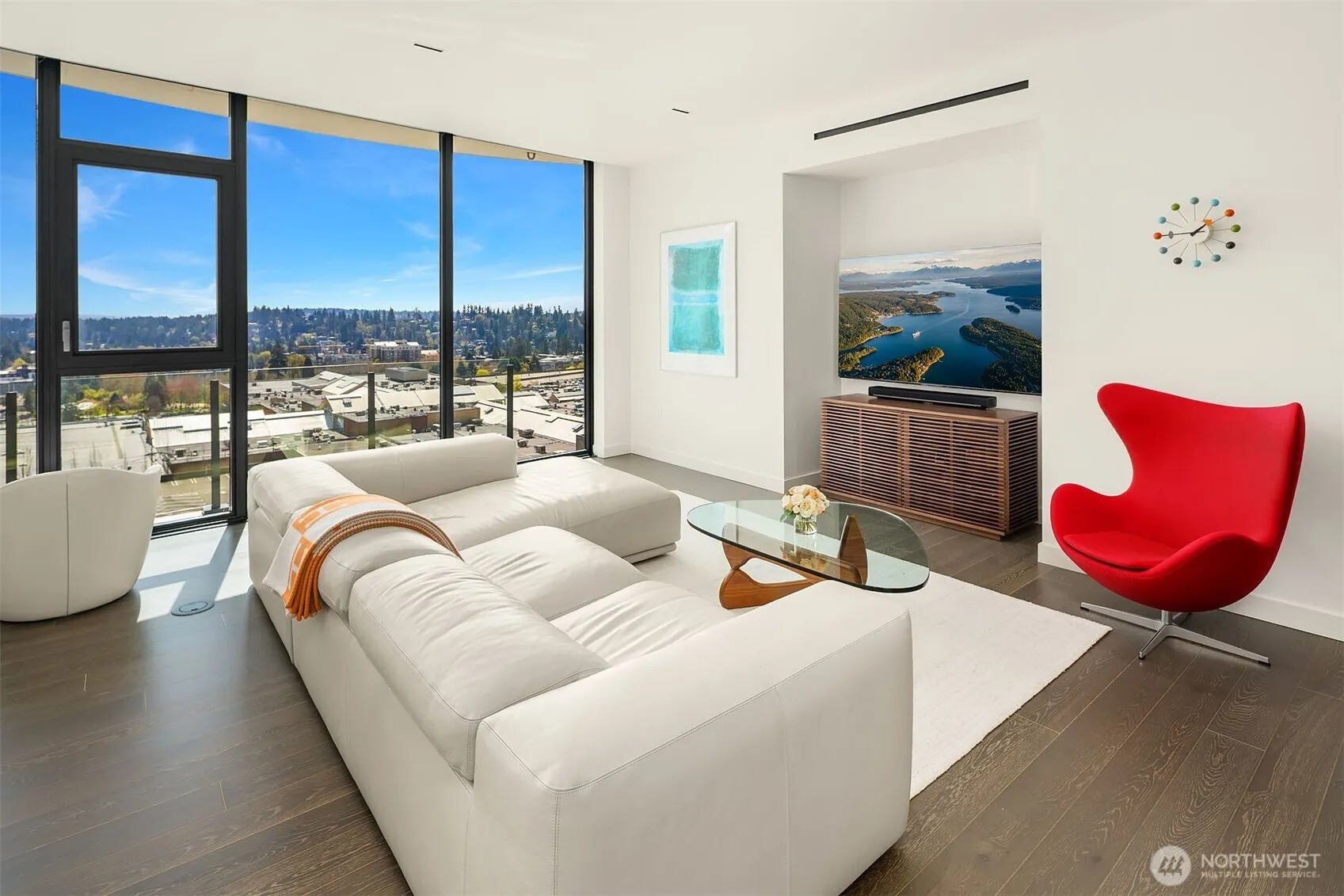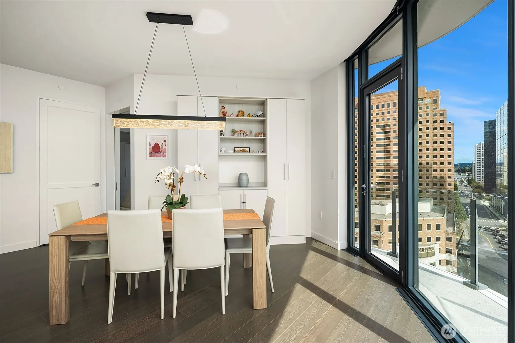 Experience elevated urban living at Avenue Estates. This better-than-new, sunny SE-facing corner residence showcases an open layout with 9.5′ ceilings, wide-plank wood floors and sweeping city and lake views through a wall of floor-to-ceiling windows. The gourmet island kitchen features Ernestomeda cabinetry, marble and Caesarstone countertops and top-of-the-line Gaggenau appliances. The primary suite offers a spa-like bath with Laufen soaking tub, rain shower and double vanity plus custom closet built-ins. The home also includes 2 parking spaces with an EV charger and storage unit. Enjoy resort-style amenities with 24/7 concierge, fitness center, owner’s lounge, InterContinental Hotel plus the best of downtown Bellevue: shopping, dining & more all at your doorstep. Don’t miss the rare opportunity to own this popular and otherwise completely sold out floor plan!