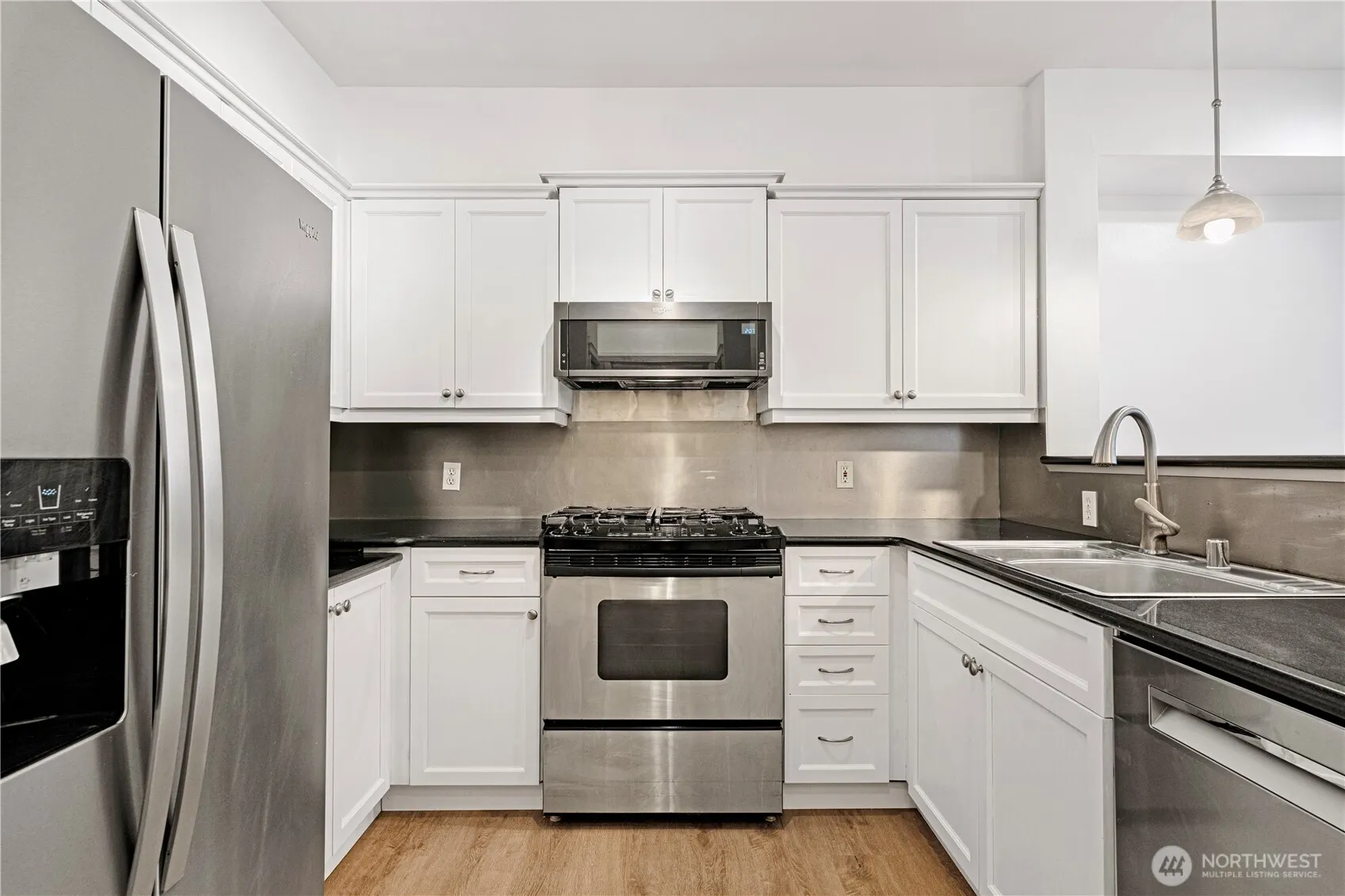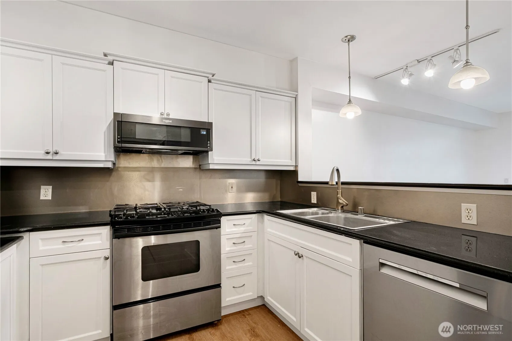 Huge price drop! Walk score 92! $346 per month HOA dues include w/s/g, gas & earthquake insurance! With garage parking spots in a prime Queen Anne location—blocks to Climate Pledge, Seattle Center & more! This 608 sqft 1bed located in IV West Condos, built in 2003. Features an open layout w/ soaring ceilings, natural light, gas fireplace & versatile den—ideal for WFH or guests! The updated kitchen features white cabinet, counter space, pantry & gas stove, new flooring throught the condo. The bedroom includes custom closet system & blackout shades. A spacious bath w/ modern finishes & oversized laundry room for extra storage. Covered balcony with space needle view; rooftop deck w/ sweeping city & Puget Sound views!