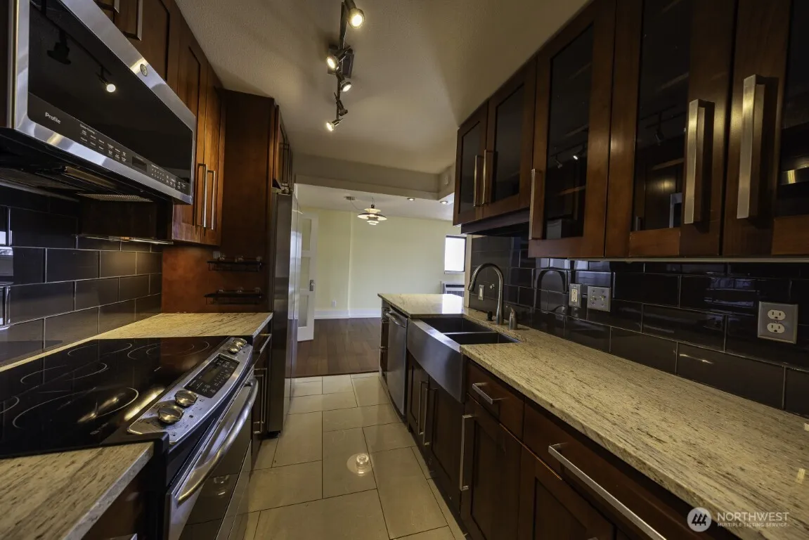 Avail NOW! Light-filled and beautifully updated 3-bedroom corner condo offering sweeping west-facing views of Elliott Bay, West Seattle, and the Olympic Mountains! With new paint and carpet, the open floor plan features an elegant kitchen with modern amenities, a large pantry, and a serving bar that opens seamlessly to the dining and living rooms, creating a warm space for everyday living and effortless entertaining. Go out onto the covered deck to enjoy fresh air and expansive views year-round. The spacious primary bedroom includes an en-suite bath, while two additional bedrooms provide ideal flexibility for guests, office, or creative pursuits. In-unit laundry, generous storage throughout, a controlled access building, a storage room, and a dedicated controlled access parking space add comfort and convenience. 2 Pets max less than 60lbs w/$1000 add’l pet dep. Must have license. Significant pet rules and restrictions, inquire prior to applying. 1 storage unit, 1 pkg spot and W, S, G all included. Elevators to be out of service 7/1/2026-8/31/2026.