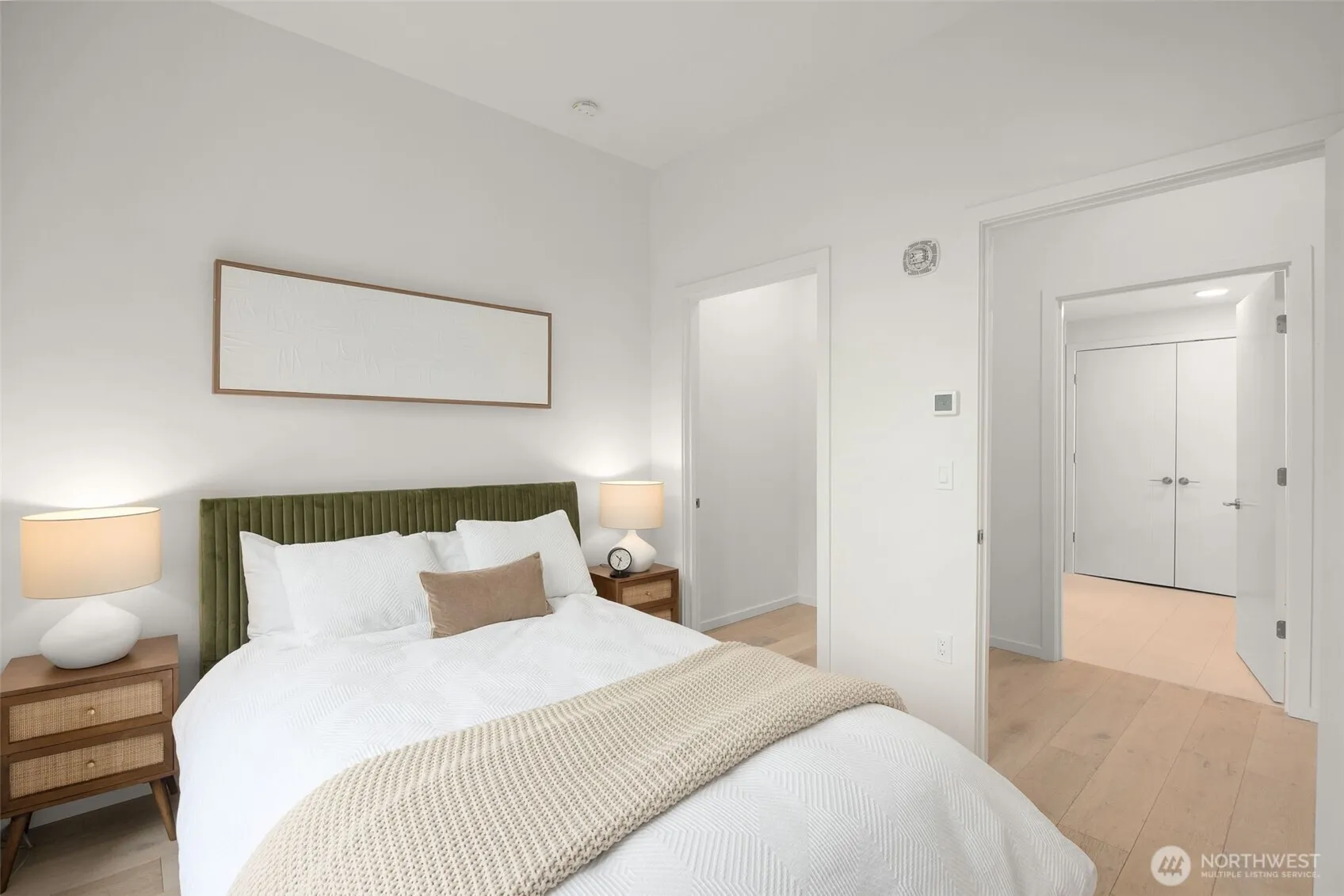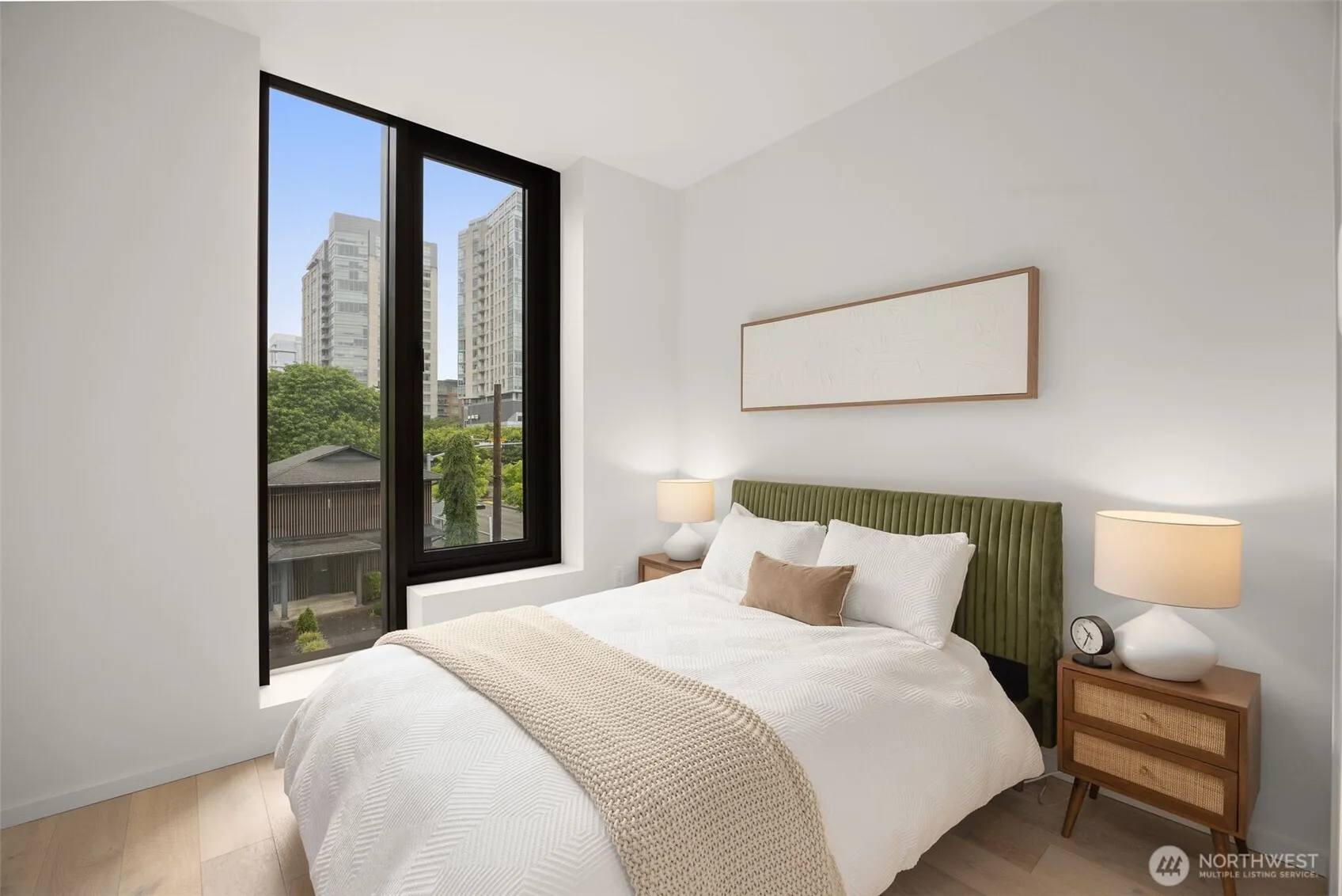 Experience modern urban living in this ADA custom unit at GIS Plaza in Downtown Bellevue. This 2nd-floor one-bedroom features soaring ceilings, engineered hardwood floors, operable windows, and A/C. The open-concept kitchen boasts Miele appliances, quartz countertops, and sleek finishes. The spacious bathroom offers Grohe fixtures, ceramic tile, and heated floors. Enjoy added perks like a secure garage and an expansive rooftop deck with stunning views. Ideally located next to the Bellevue Library, playfield, and all downtown amenities—this is city living redefined.