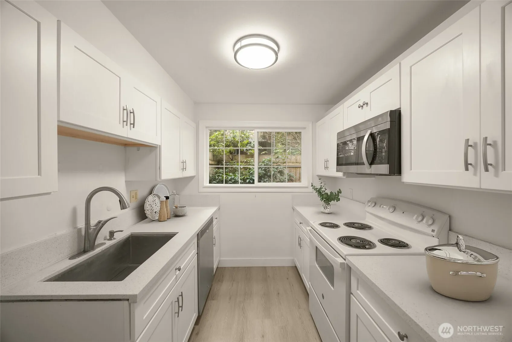 An exceptional end-unit opportunity in Newport Hills Townhomes offering added privacy, natural light, and a seamless indoor-outdoor lifestyle. Thoughtfully updated kitchen and baths pair with newer laminate flooring across the main living area, creating a clean, modern feel. The functional layout features two bedrooms with closets and an inviting living space that opens to a private, fully fenced patio—ideal for relaxing, entertaining, or pets. Enjoy the convenience of one assigned parking space plus abundant guest parking. Community amenities include a pool, tennis and basketball courts, playground, dog run, clubhouse, and expansive green space. Walking distance to award-winning Newport Heights Elementary and Chinese immersion Jing Mei School —all within the highly regarded Bellevue School District. Easy access to I-90 and I-405, and just minutes to downtown Bellevue. Walk to Newport Hills Swim & Tennis Club, an Asian grocery market, and nearby neighborhood conveniences. No Rental Cap. A perfect place to call home.