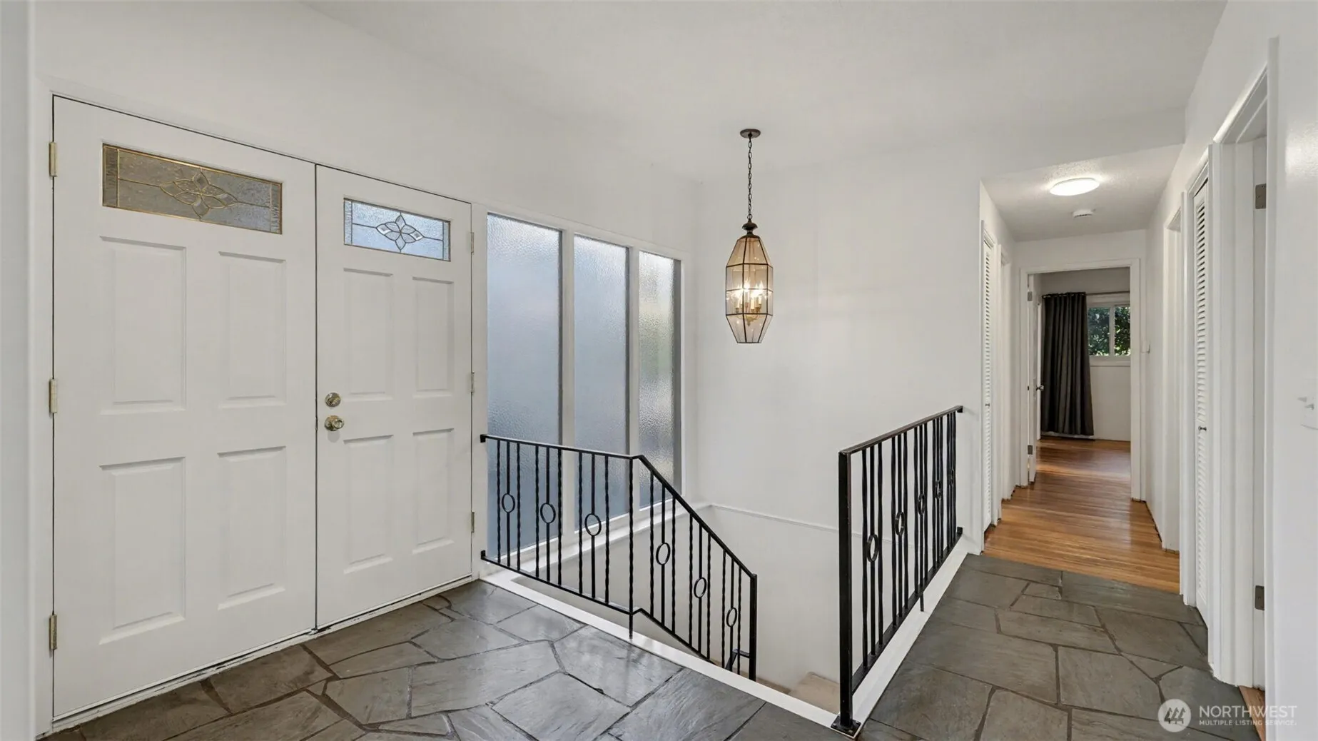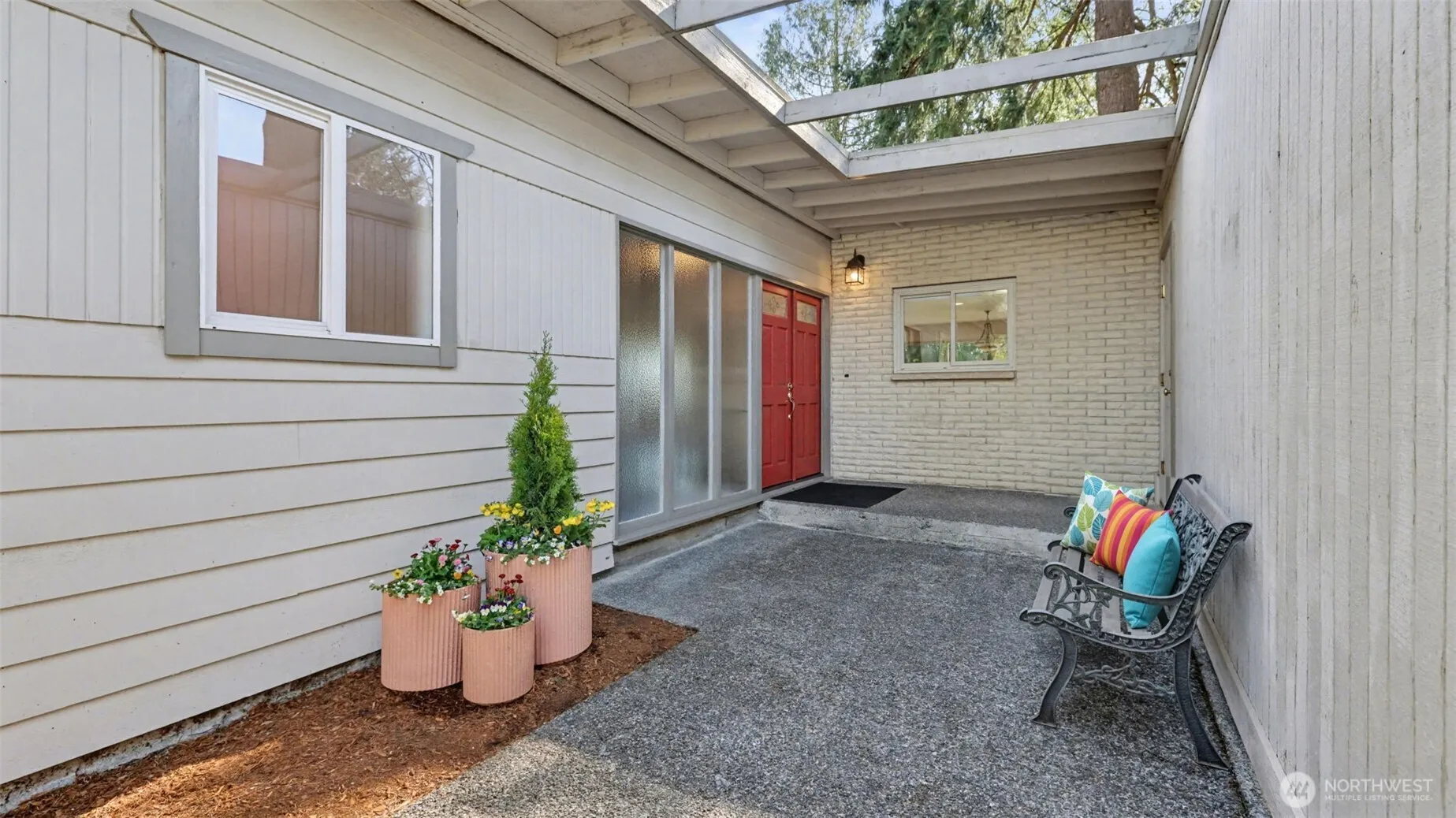 Welcome to this five bedroom, three bath Mid-Century Modern home in the desirable Lochmoor/Microsoft neighborhood in Bellevue. Spanning 2,690 sq ft, the property boasts a functional layout designed for comfort and accessibility. Main Level: Features a light-filled living room with a gas fireplace, kitchen, and dining area with Southwest exposure sliding doors. Three bedrooms and two bathrooms. Original hardwood flooring throughout the main floor. Lower Level: Includes a large family/rec room with a wet bar, generously dedicated office space, two additional bedrooms, a bathroom and a utility room. Upgrades include Renewal by Anderson windows and a newer HVAC system by Trane with an Air Scrubber system. Fully fenced terraced backyard with a sun filled deck and a private patio. Detached garage with a large driveway and RV/boat parking area. This home is centrally located near Microsoft, with easy access to WA-520 and just blocks away from Lake Sammamish.