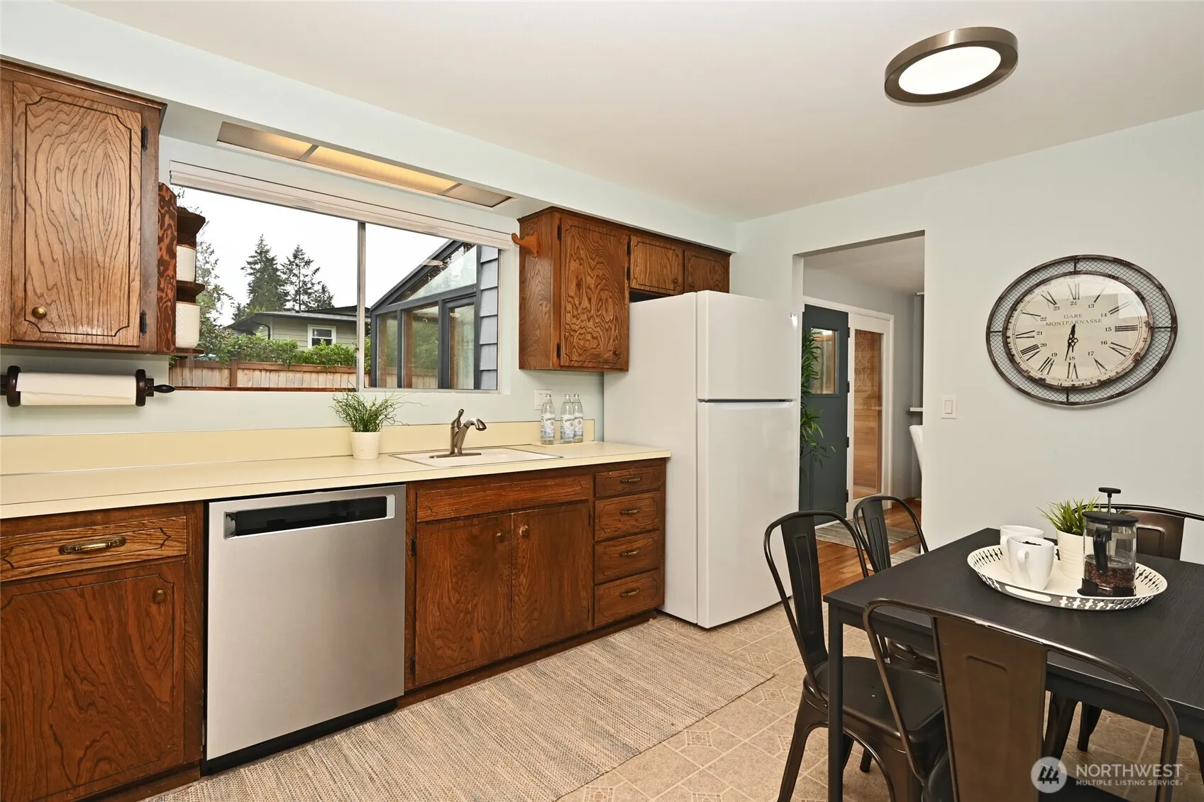 Tucked away on a quiet cul-de-sac, this mid-century tri-level lives large. 4 beds & 1 3/4 baths on the upper level include the primary with en-suite bath. Gleaming hardwoods compliment fresh, professional interior/exterior paint for a crisp, modern look. All 3 bathrooms shine with new quartz, new sinks & quality fixtures. Live in comfort with central air conditioning. The lower level boasts a rec room, office/guest room, 1/2 bath (plumbed for shower), & laundry with exterior entrance. Large newly fenced yard. No need now, but when you’re ready, you can update the kitchen, add a deck, or transform the solarium (bonus, not included in the sq. ft.). Move in ready, great neighbors, Shoreline schools, Close to DT Edmonds & amenities.