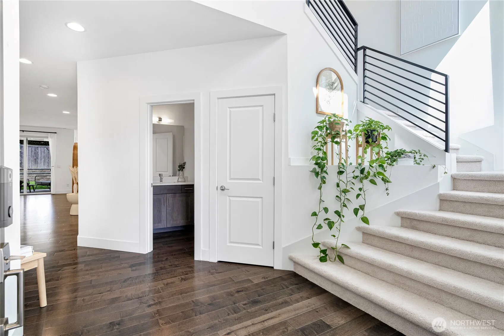 Modern elegance meets everyday comfort in this sunlit 4-bed + super loft home, featuring a main-floor guest room and an airy, open layout. Soaring ceilings and expansive windows flood the space with natural light. The gourmet kitchen boasts white cabinetry, quartz counters, and a generous island—ideal for entertaining. Dining flows into a cozy family room with a gas fireplace. The spacious primary suite includes a spa-inspired bath. Enjoy designer lighting, plantation shutters, A/C, smart home features, and hardwoods throughout the main. Covered patio opens to a fully fenced backyard with raised garden beds. Ample storage! Lake WA Schools, 2 mins walk to Amzn shuttle, close to major Tech Companies and Town Centers, I-405. Pre-inspected!