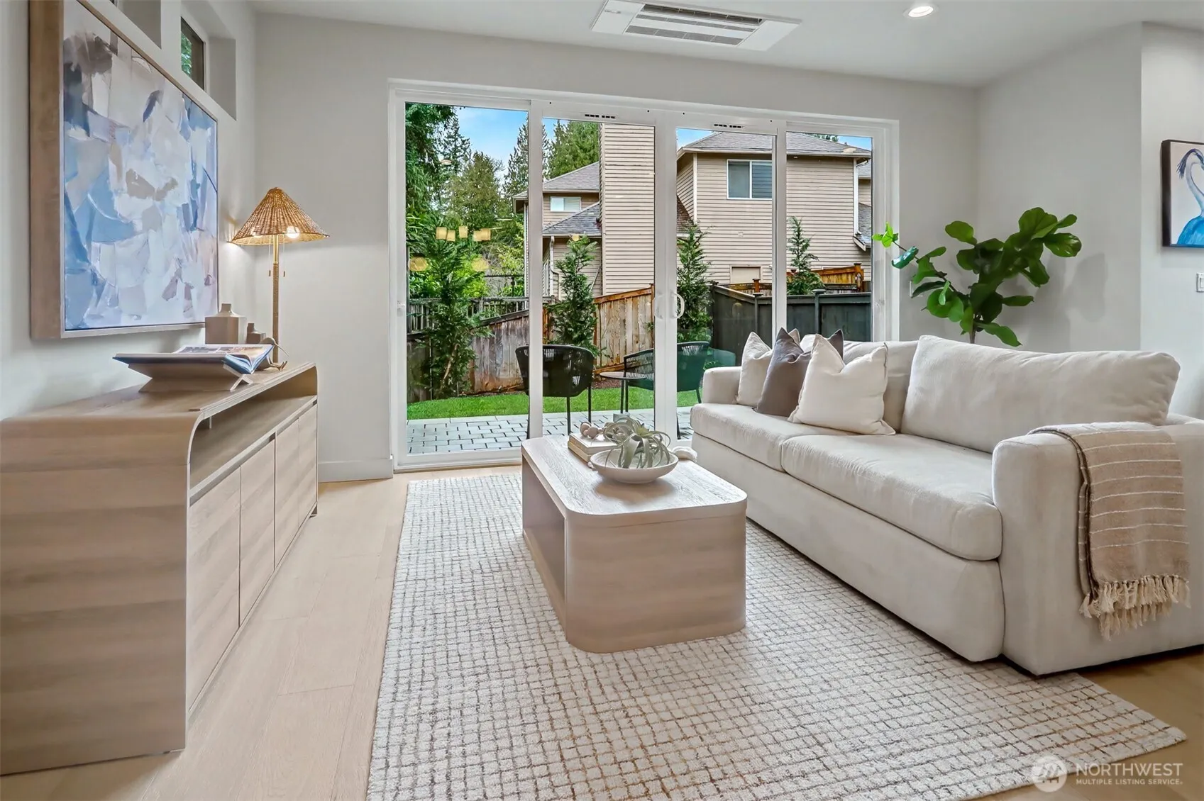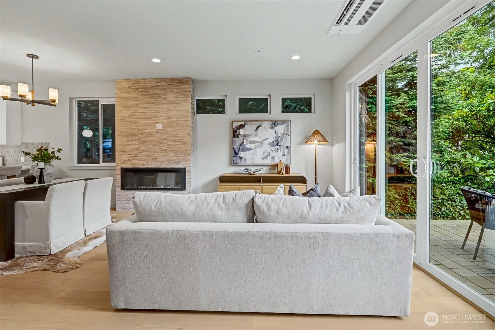 Stylish new construction offering a seamless blend of contemporary design and comfortable living. This thoughtfully designed 2-bedroom, 2.5-bath home features high-quality finishes and a bright, modern feel throughout. The chef’s kitchen is equipped with premium appliances, quartz countertops, and custom cabinetry. The open-concept main level provides spacious living and dining areas centered around a cozy fireplace, along with a sleek dry bar and convenient powder room. Upstairs, vaulted ceilings create an airy atmosphere in the light-filled primary suite, complete with a spa-inspired bathroom and heated floors. Step outside to a private patio and fully fenced yard surrounded by lush greenery—ideal for entertaining or relaxing. Two off-street parking spaces included.