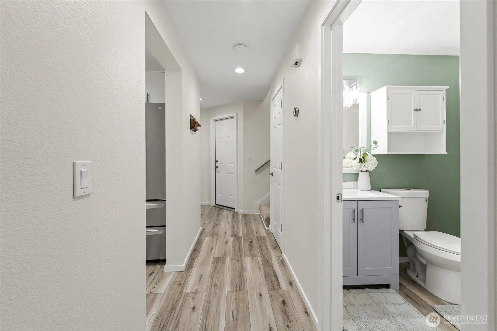 GET A 3.75% STARTING MORTGAGE RATE (ask your agent for details), OPEN HOUSE 3-6PM today Wednesday April 22nd. Exclusive chance to own this exquisitely remodeled residence in Kirkland. Crafted w/ enduring quality & design, this home features SS appliances, tall soft-close cabinetry, premium 12 mil LVP flooring, & a Heat&Glo gas FP framed in elegant stone, providing warmth even during outages. Upstairs, a bright staircase w/ skylight, leads to a refined primary suite & two add. bedrooms, all w/ custom-built closets, plus spa-inspired baths fully tiled w/ rain showerheads & a third bedroom showcasing an absolutely stunning accent wall. Flat, fully fenced backyard opens to a serene greenbelt, offering privacy & tranquil PNW sounds. Freshly painted exterior, minutes to Totem Lake Village, parks, major employers, I-405, & within the highly regarded LWSD! … This home is platted as a single-family residence and conveyed as fee simple ownership, meaning the owner holds full ownership of both the home and the underlying land, unlike many townhome properties where the land is held in common interest. … The remodel was completed in 2024 with all required permits pulled and approved. The home has been pre-inspected, please refer to the property website for additional information and a full list of improvements.