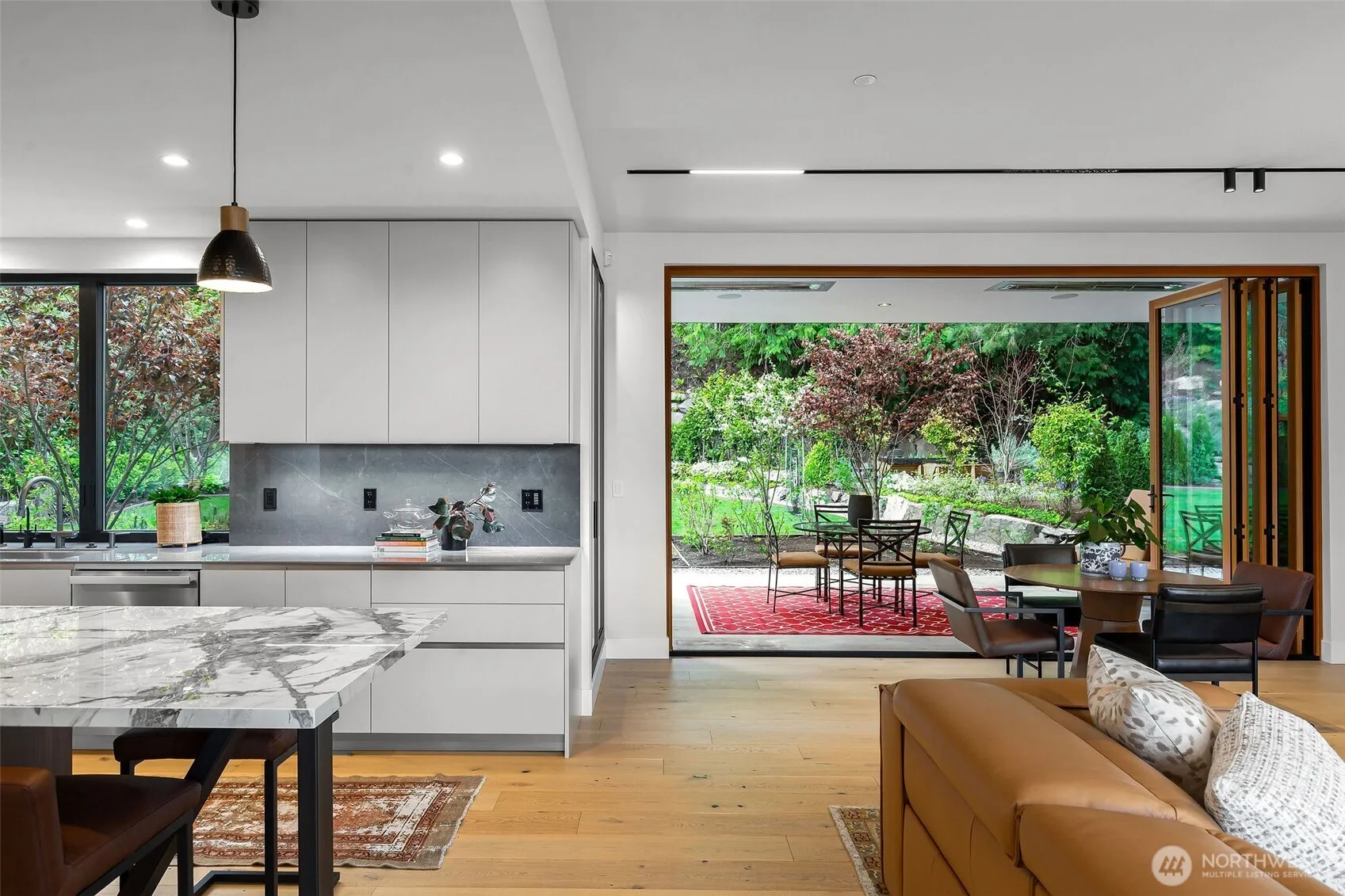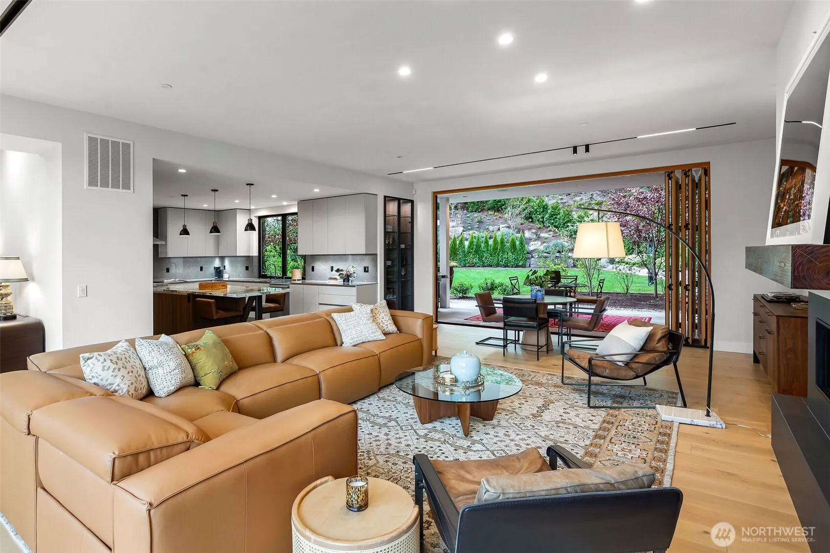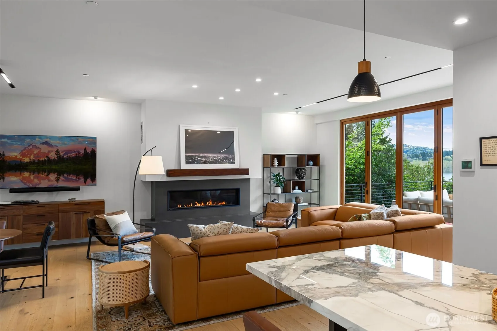 Pristinely and thoughtfully elevated beyond its original design, this gorgeous NW Contemporary strikes a rare balance; modern in form, yet warm, livable, and effortlessly inviting. Expansive yet intentional, the home unfolds through a series of beautifully scaled spaces designed for both connection and retreat. Six ensuite bedrooms offer the ultimate flexibility, suitable for guests or dedicated work-from-home environments, while multiple indoor and outdoor gathering areas create a seamless rhythm for everyday living and entertaining alike. Walls of glass and folding doors dissolve the boundary between inside and out, opening to a level, sun-filled, lush and rarely found at this scale backyard, as well as a view balcony. Covered terraces and open-air spaces invite year-round enjoyment, from quiet mornings to vibrant evenings.The current owner has taken an already exceptional build and refined it further; enhanced landscape design, and integrated AV systems. Tucked on a quiet dead-end street with access to a private beach and the Shore Club’s coveted amenities. Minutes to all that is wonderful about Mercer Island; retail, parks, restaurants and sublime commute options to Seattle & Bellevue.