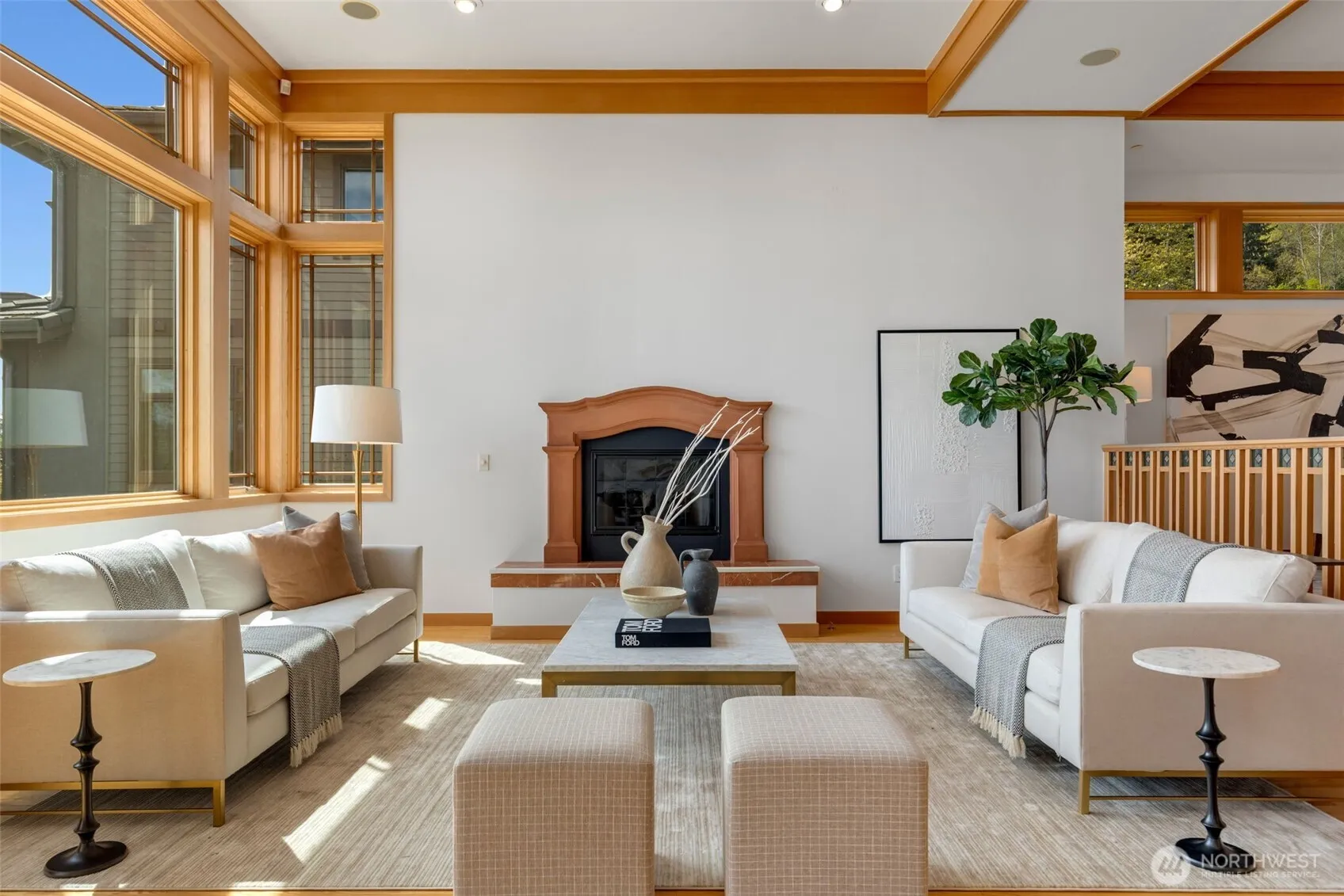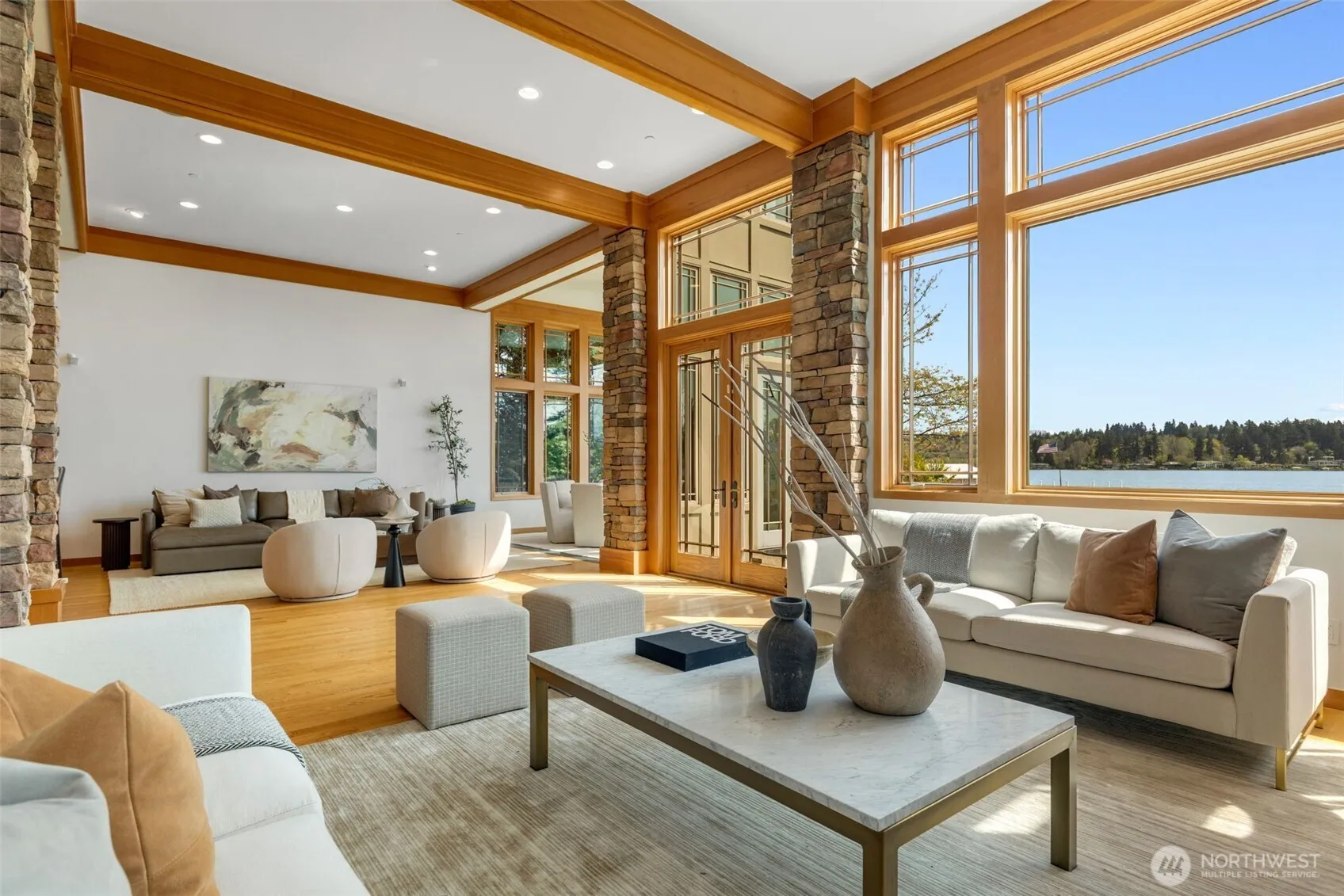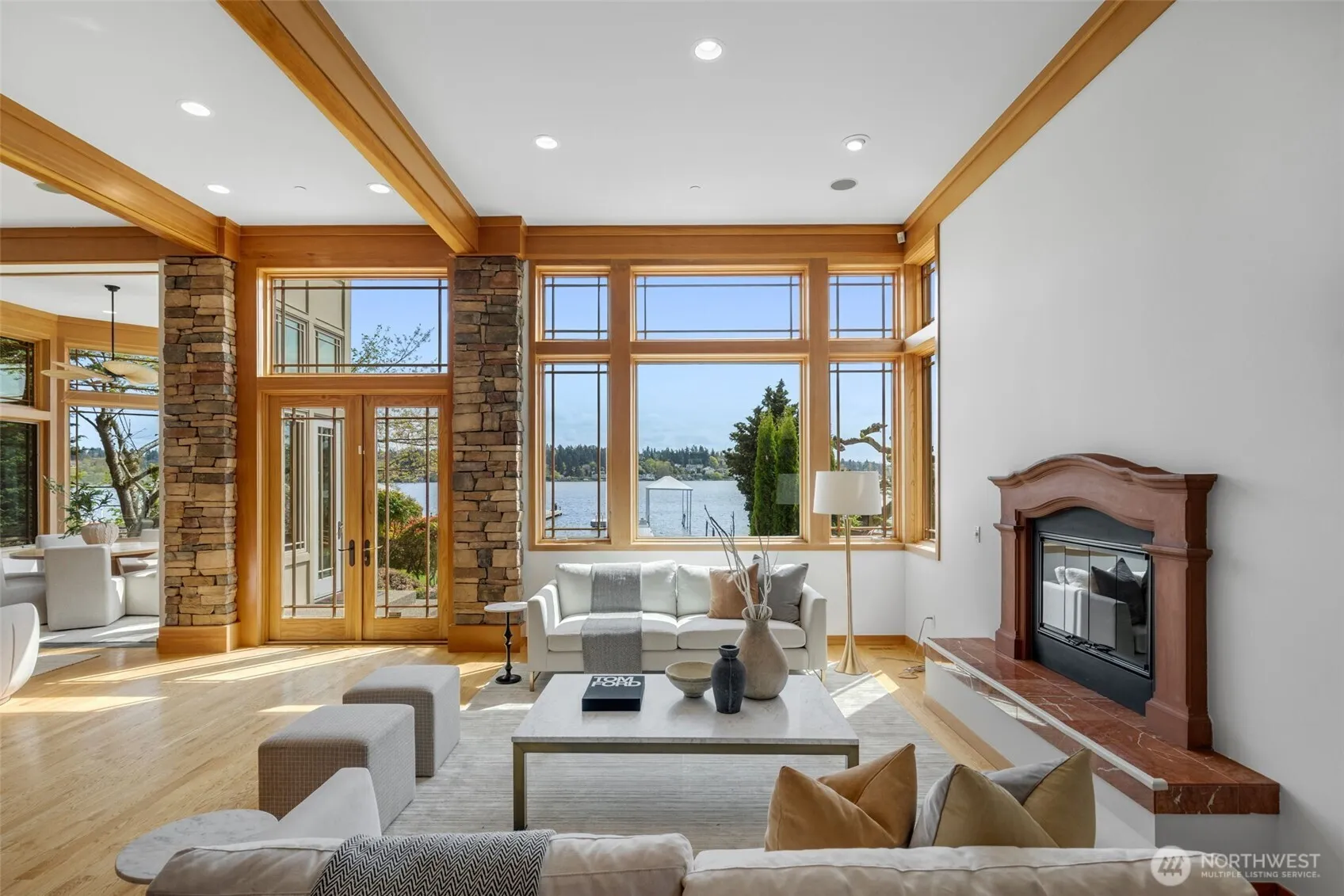 Experience the pinnacle of beachfront living in this architectural masterpiece. Designed to harmonize with the serene tranquility of Juanita Bay, this home offers a front-row seat to spectacular, unobstructed views of Mt. Rainier. Massive walls of windows flood the living spaces with natural light, blurring the line between the indoors and the shimmering lake. high-end culinary suite designed to inspire the most discerning chefs. Rich, substantial finishes and a palette of warm camel hues create an atmosphere of effortless, natural elegance. The space over the garage includes two guest bedrooms and a kitchen with a dedicated dining area. New A/C replaced in 2020. Dock resurfaced in 2022 with permit. Installed Golden lift with 48″ of range and new canopy in 2022. Whole room new painting in 2026. This isn’t just a home; it’s a private resort. Every detail has been curated for a lifestyle of leisure and convenience: