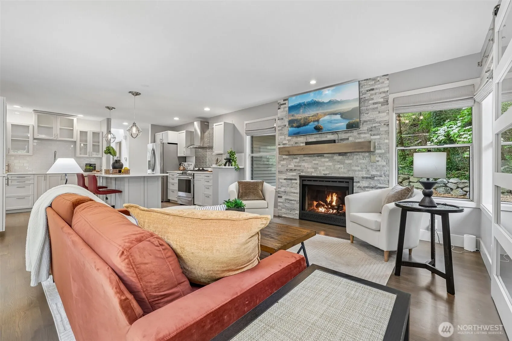 Welcome to this inviting and move in ready 2,389 sq ft home nestled in a tranquil cul-de-sac in desirable Kenmore. This lovely home has been recently updated to feature an amazing kitchen with quartz counters, both a gas oven and electric oven (for the bakers), ample counter space and high end appliances. The main level features a living room, family room, kitchen and dining room with windows facing the private and lush back yard. The three bedrooms upstairs, include a newly remodeled primary suite, complete with large walk-in closet and 5 piece bathroom, including a large, tiled shower with dual shower heads. Move in ready with thoughtful upgrades and new carpet throughout the home. Enjoy quiet evenings under the gazebo, wired for a hot tub for future relaxation and entertaining. Bordering Saint Edwards park, this property offers immediate access to 326 scenic acres and public boat access on Lake Washington is less than 1 mile away. Conveniently located near parks, top-rated Northshore schools, shopping, dining, and major commuter routes, this home offers the best of suburban living with easy access to everything you need. Enjoy Pacific Northwest charm in Arrowhead, one of Kenmore’s most sought-after neighborhoods!