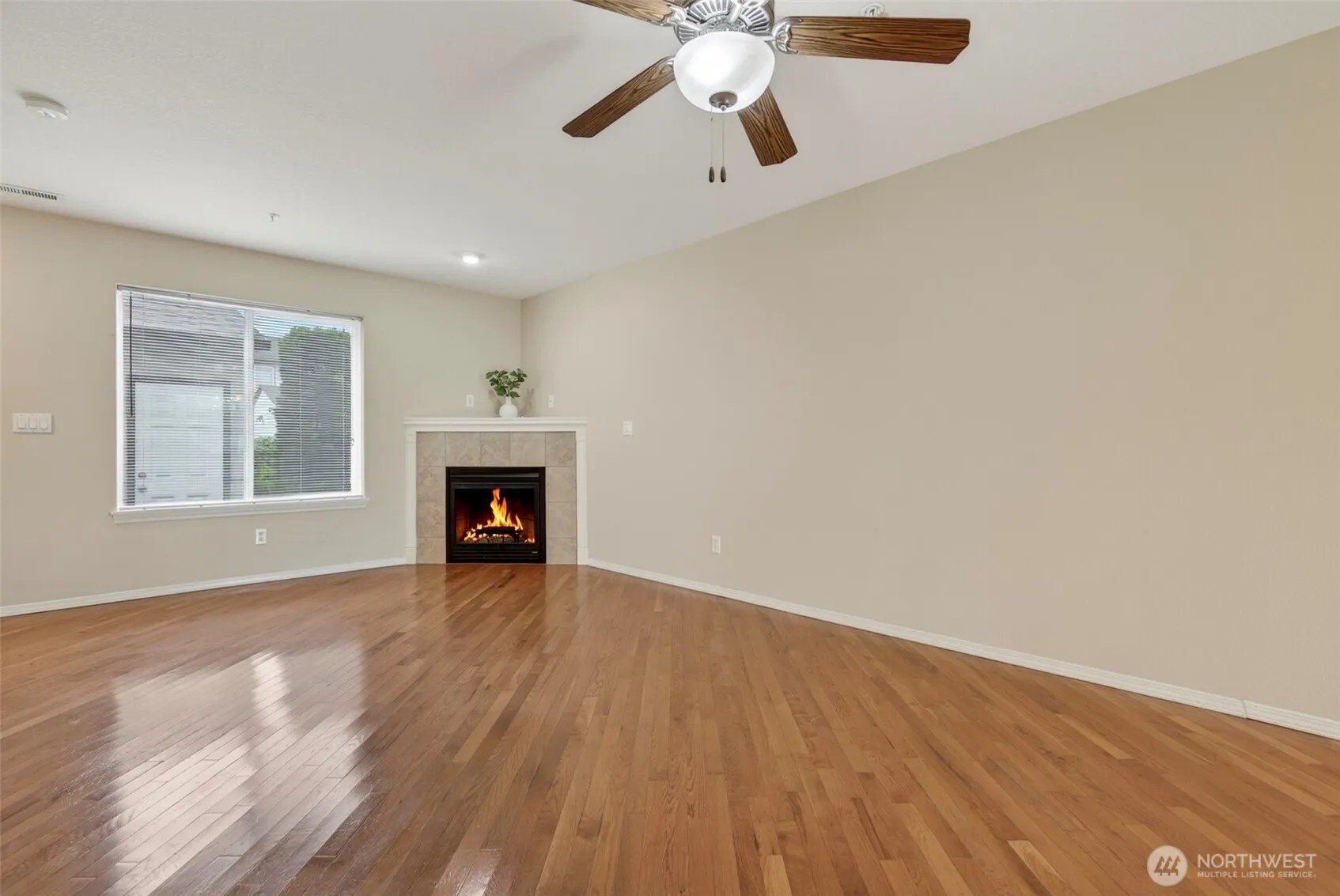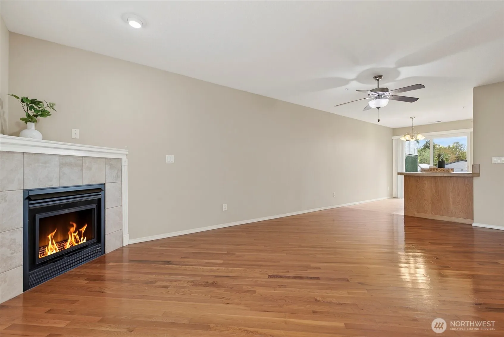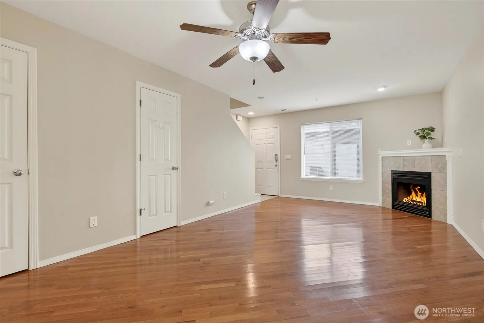 Welcome home to this beautifully maintained and move-in-ready townhome offering comfort, space, and functionality in a peaceful setting. The light-filled main level features an open-concept layout with warm hardwood floors, a cozy gas fireplace, and seamless flow into the kitchen and dining area—perfect for both everyday living and entertaining. The kitchen is well-appointed with ample cabinetry, generous counter space, and a convenient breakfast bar, all overlooking the dining area with sliding glass doors leading to a private patio space. Enjoy easy indoor-outdoor living with room to relax, garden, or host. Upstairs, you’ll find well-sized bedrooms, 2 full baths, and the convenience of in-unit laundry. The home offers excellent storage throughout and a thoughtful layout that maximizes space and livability. Additional highlights include a detached garage, dedicated parking, and a backyard gate to the quiet community setting surrounded by mature trees and green space. Ideally located with easy access to shopping, dining, and commuter routes—this is low-maintenance living at its best. Don’t miss this opportunity to own a well-cared-for home in a desirable location!