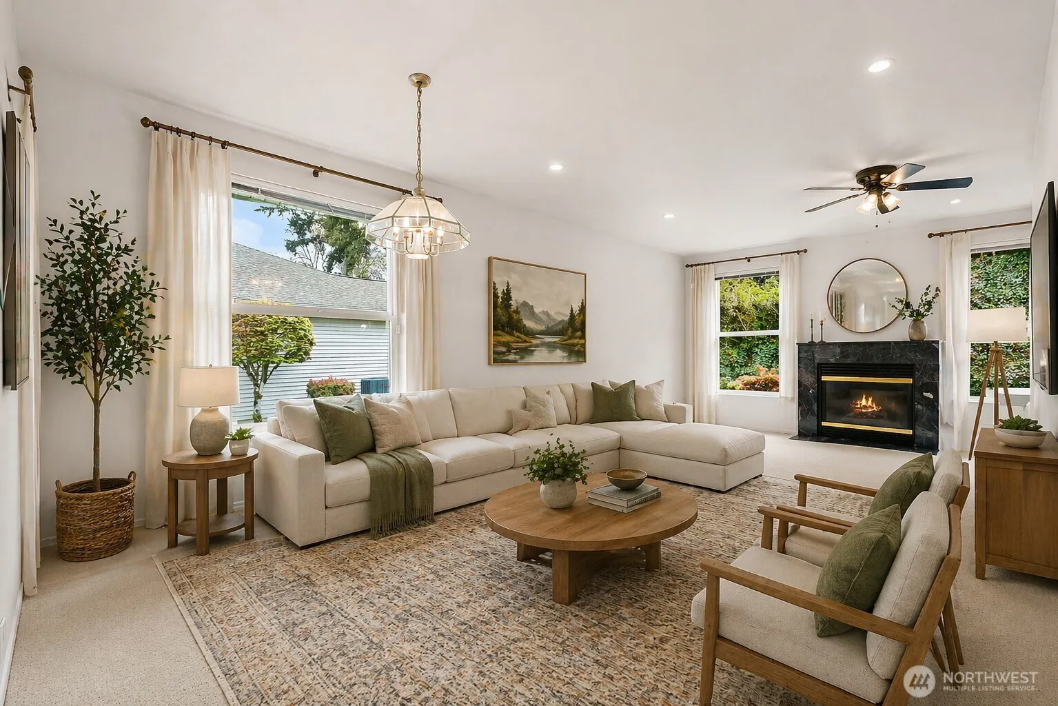Welcome to this beautifully maintained residence nestled in the desirable Oakbrook community of Lakewood. Thoughtfully designed for comfortable living, this home offers a spacious and light-filled layout with inviting living areas and seamless flow throughout. The well-appointed kitchen features a charming breakfast nook and opens to the dining and living spaces, creating an ideal setting for both everyday living and entertaining. A cozy fireplace anchors the living area, while large windows invite abundant natural light, enhancing the warm and welcoming atmosphere. Enjoy year-round comfort with air conditioning for those warmer days. Additional highlights include a spacious two-car garage and driveway, providing ample parking and convenience. Experience the ease of low-maintenance living in a serene setting, surrounded by mature landscaping and a peaceful neighborhood ambiance. Conveniently located near golf, parks, shopping, and dining, this home offers both tranquility and accessibility. A wonderful opportunity to own in one of Lakewood’s most established and sought-after communities.