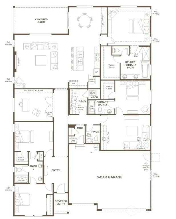 Welcome to Kokanee Estates where you can choose your finishes! Single-story living meets stunning design in the ranch-style Darius. This expansive floor plan offers four bedrooms, including two primary suites. The main suite boasts a walk-in closet plus deluxe private bath, while the secondary suite features an attached living area with separate entrance. An open layout is adjacent, showcasing a great room, breakfast nook, and impressive gourmet kitchen. Don’t miss the study, 3-car garage, and covered patio!