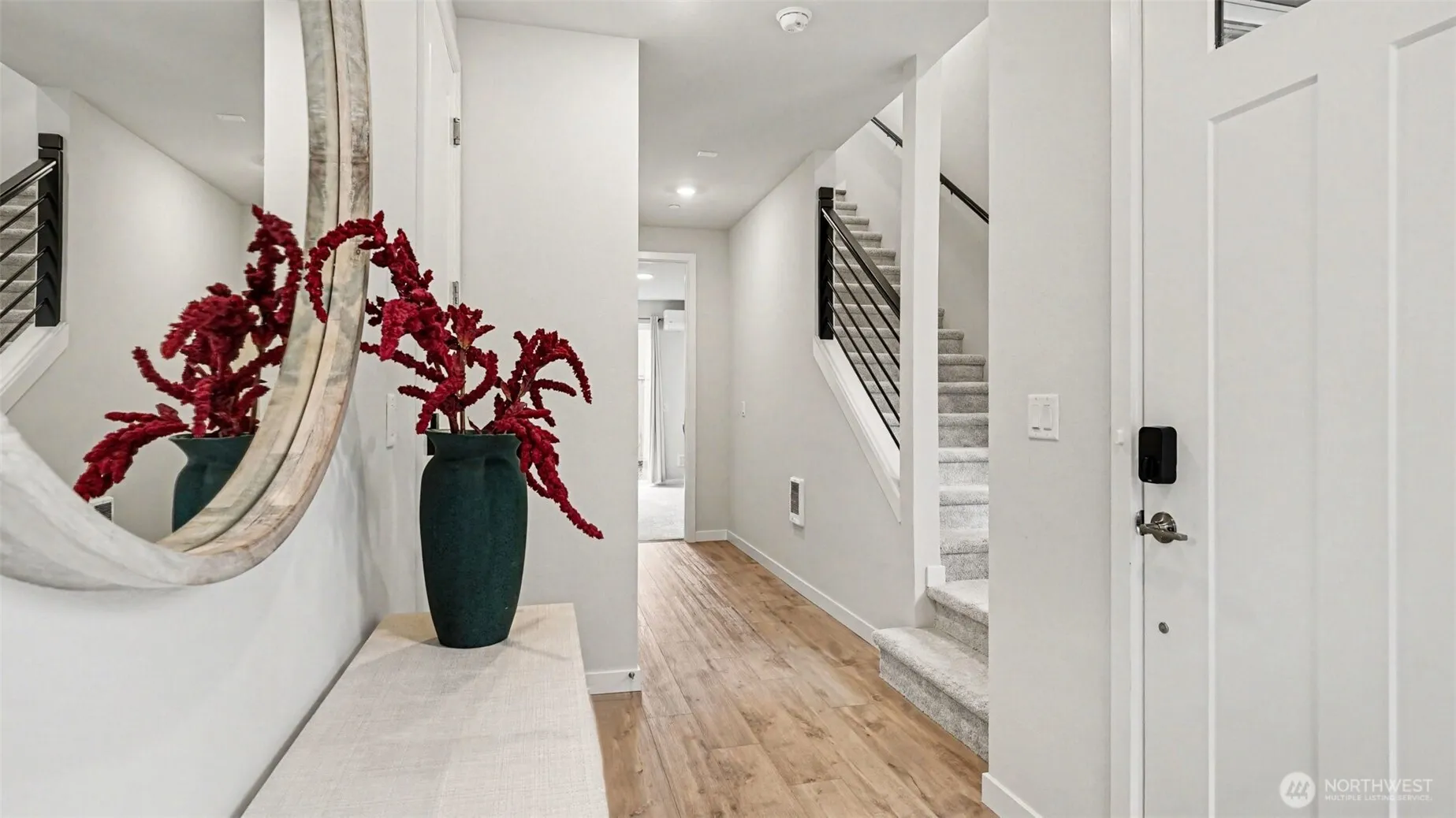 Better than new, this 2024-built modern corner-unit townhome by Pulte offers 4 beds, 2.5 baths, and a large 2-car tandem garage with low HOA dues. The main level features a stylish kitchen with a spacious pantry flowing into an entertainment-ready great room. Enjoy a private covered patio off the great room, perfect for relaxing or for the coffee sip. Upstairs includes 3 bedrooms, highlighted by a serene owner’s suite with 5 piece spa like bath. Ideally located minutes from I-5/I-405, Ash Way Park and Ride, and Mill Creek Town Center. Just step outside community to play in Martha Lake for summer fun. Modern, convenient, and move-in ready!