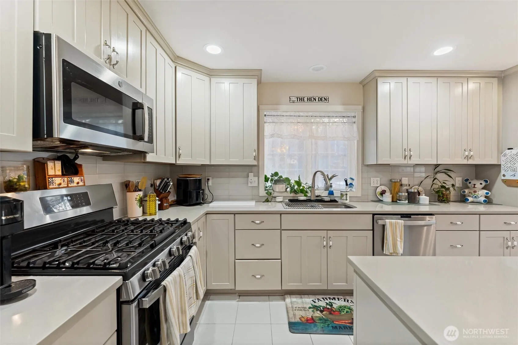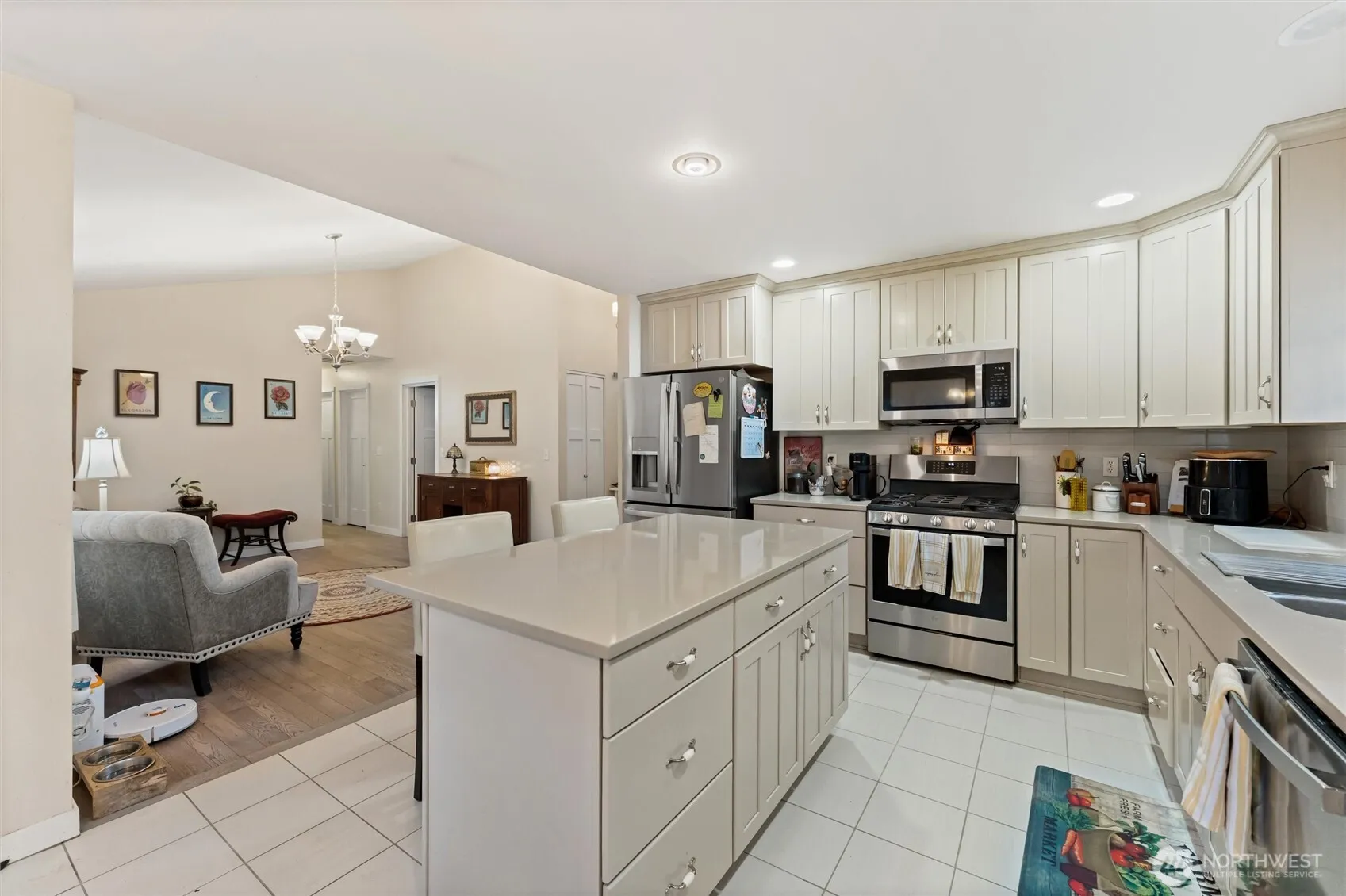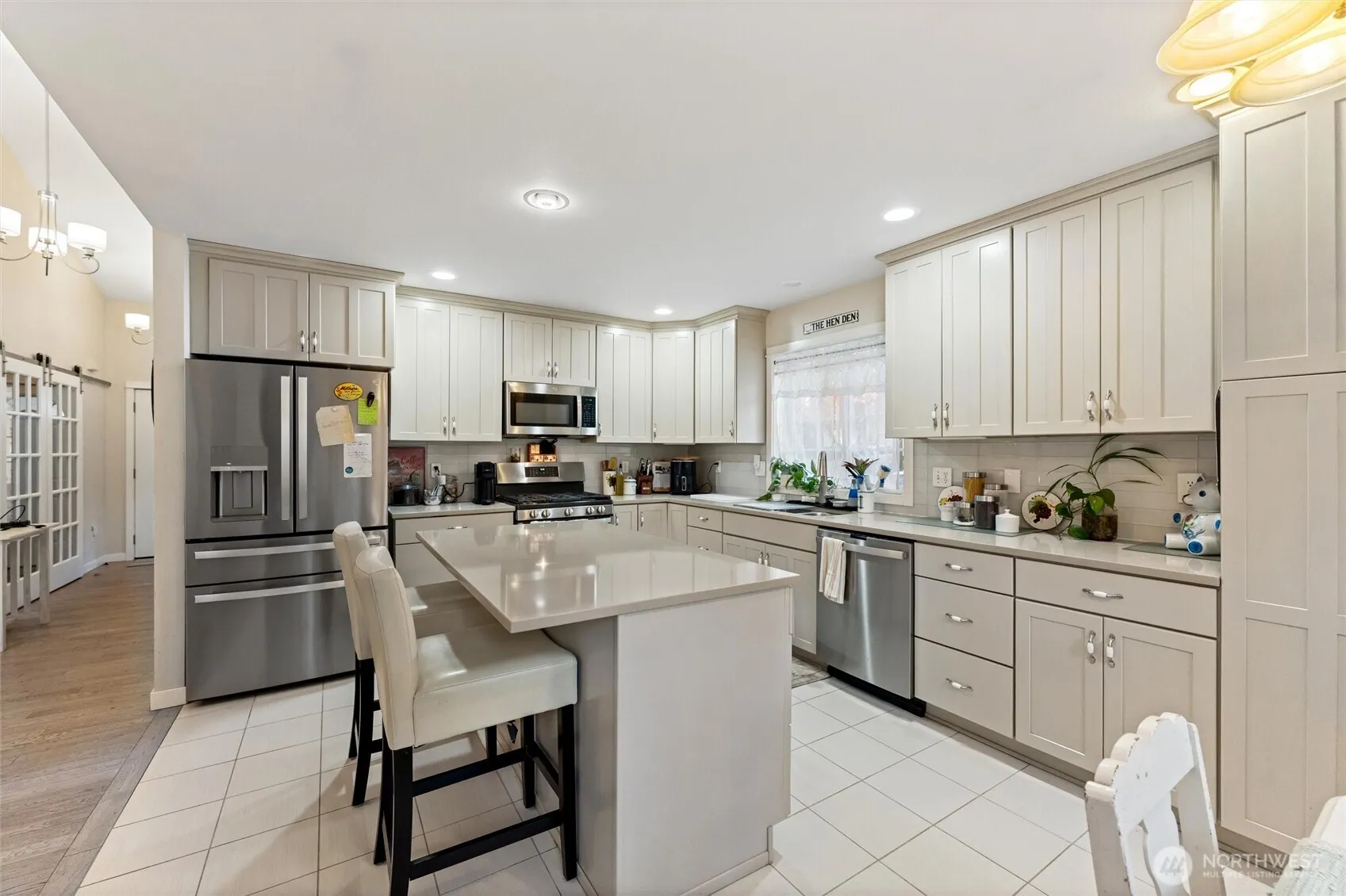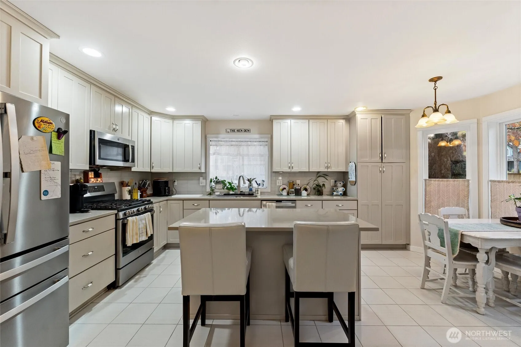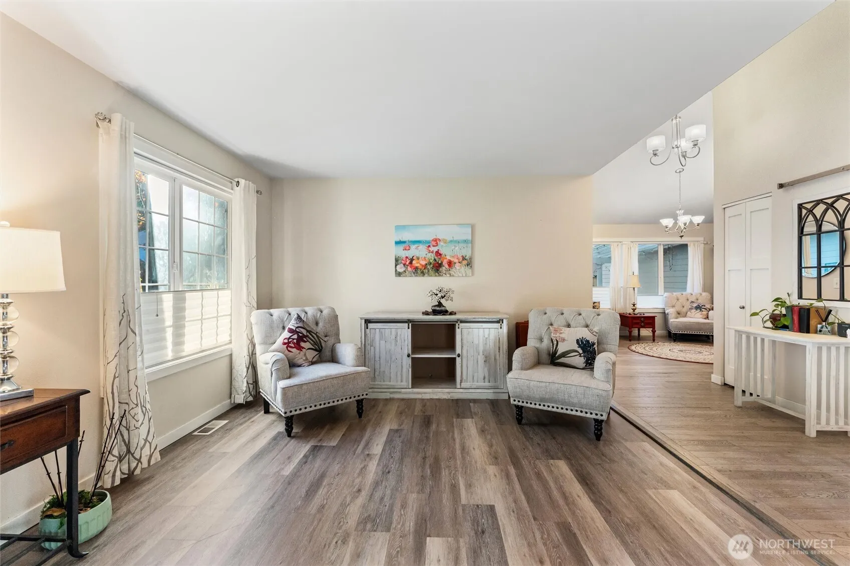 Visually stunning Northwest gem. This neighborhood is a must visit! Well-maintained 3 bedroom, 2 bathroom rambler on a desirable corner lot in Kempton Downs. Open single-level layout with excellent flow. Bay windows throughout bring in natural light and add character. Large primary bedroom with ensuite bath, soaking tub, and shower. Updated kitchen with ample storage and island for casual dining. French doors open to a versatile bonus space with vaulted ceilings ideal for a home office or secondary living area. Upgrades include new cedar fencing, tankless water heater, and vinyl flooring throughout. Spacious fully fenced backyard with pergola and mature landscaping, offering a private setting for outdoor living. A strong blend of functionality, updates, and usable space inside and out. Ask listing agent about lender credit!