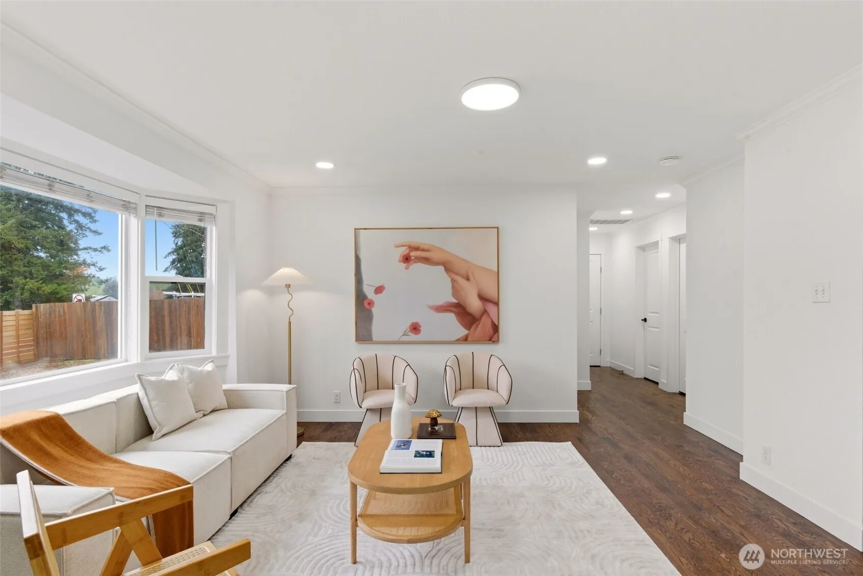 Nestled in Edgewood, this 3-bed, 1-bath Rambler is perfect for first-time home buyers. Open concept floor-plan with lots of natural light through-out the home, hardwood floors & Tile in the bathroom. Beautiful Kitchen cabinets with backsplash tile, quartz countertops & SS appliances. Fully fenced spacious backyard with covered deck, RV/truck parking. Convenient access to shopping, schools, and freeways.