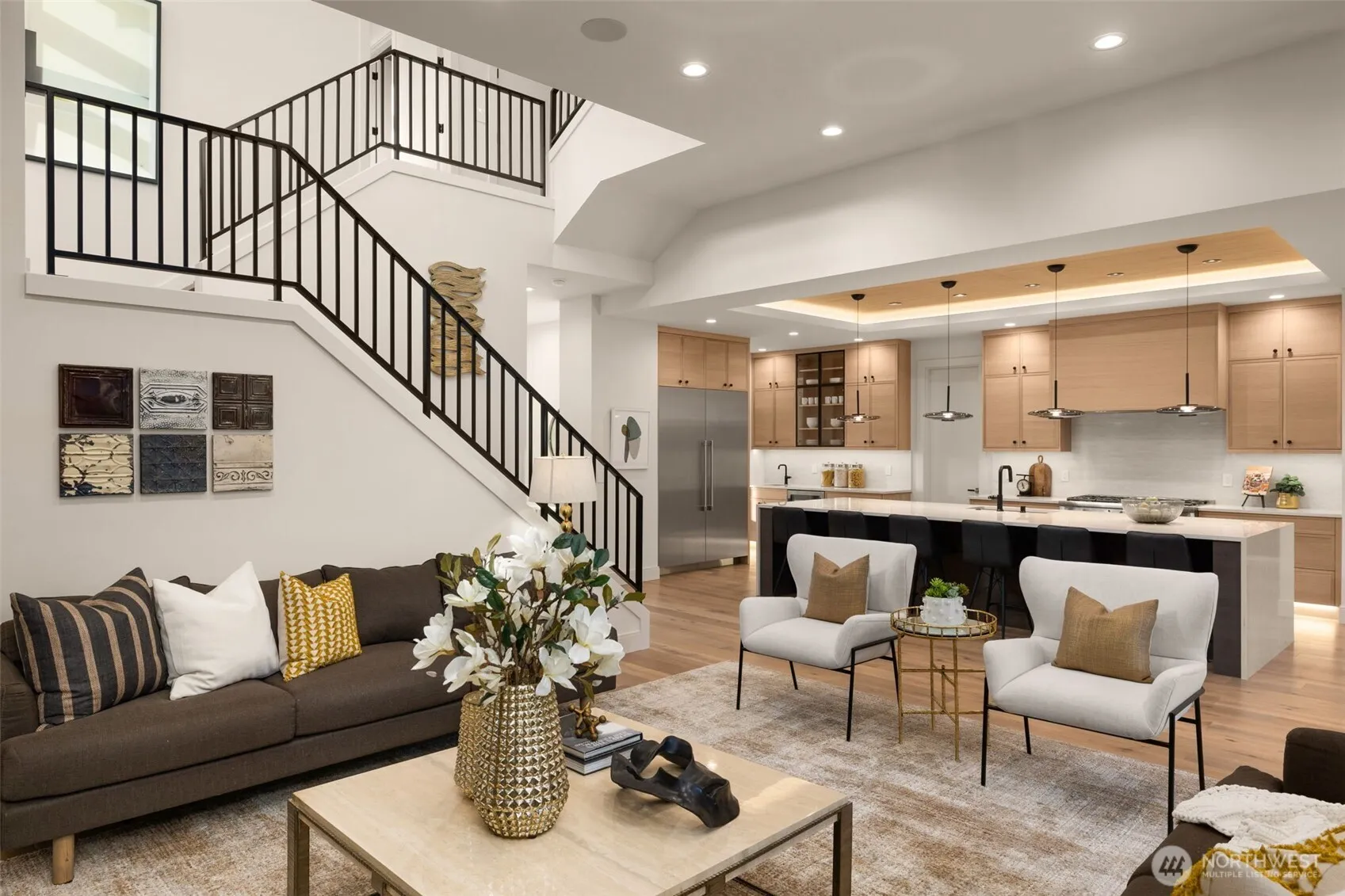 From boutique Bellevue builder Bellshire Homes comes yet another thoughtfully crafted custom residence in West Lake Sammamish, reflecting the signature quality and attention to detail the builder is known for. Set on a private, expansive homesite with exceptional landscaping, the home is designed for effortless living and entertaining, featuring dramatic ceiling heights, abundant natural light, and striking architectural details throughout. The gourmet kitchen offers premium Thermador appliances, statement stone surfaces, and an oversized island. Open-concept living spaces extend to a covered terrace and private backyard retreat. The spa-inspired primary suite provides a serene escape, while smart-home technology, solar power, efficiency, and flexibility complete this exceptional offering. A spacious three-car garage adds both convenience and functionality. Centrally located near Bellevue, Sammamish, and the Microsoft campus, it delivers privacy without sacrificing convenience.