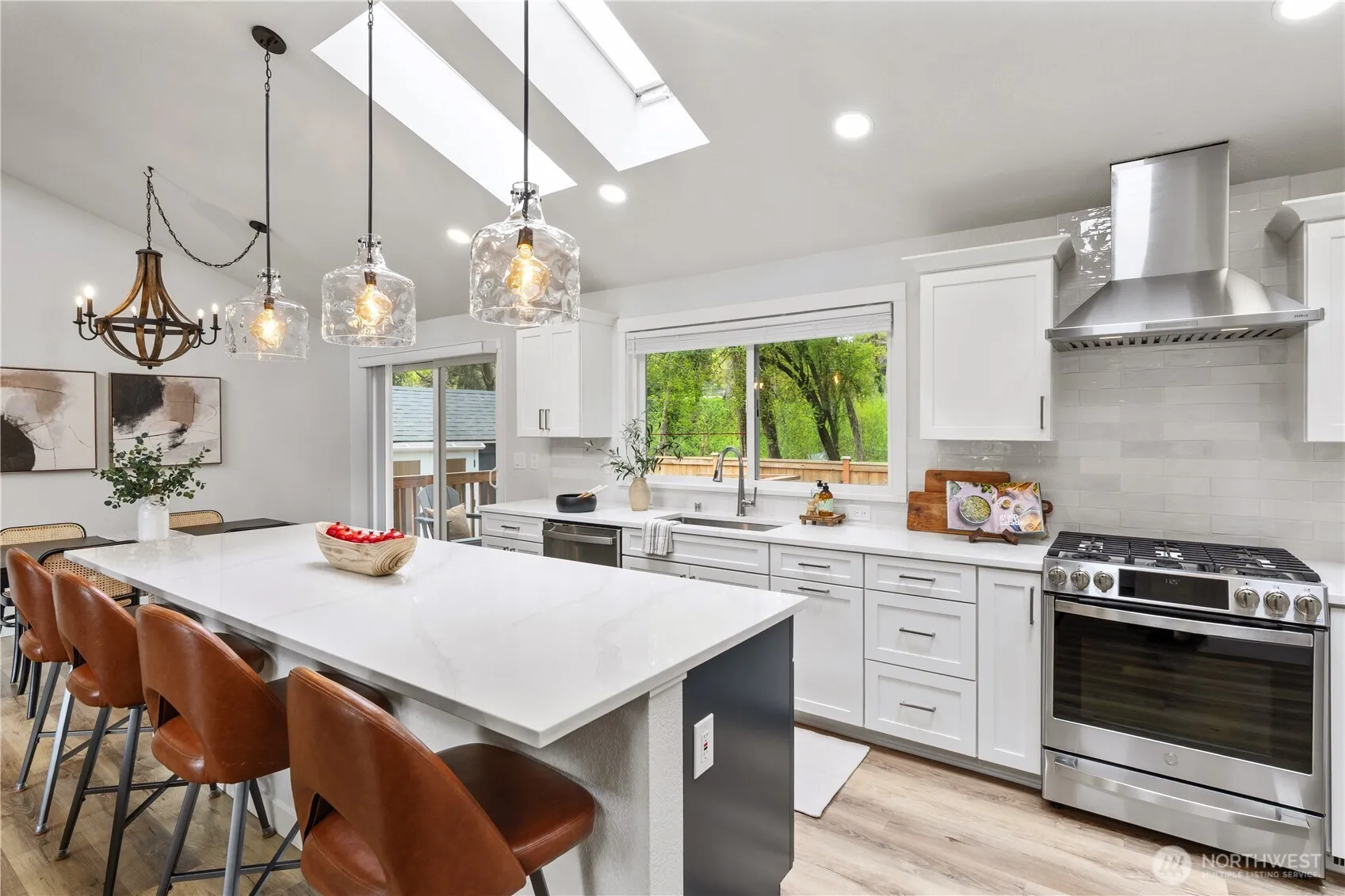 Beautifully updated and move-in ready, this Kirkland tri-level blends modern style with everyday comfort. Light-filled and airy, the home features vaulted ceilings, skylights, and generous windows that flood the space with natural light year-round. The open-concept kitchen shines with sleek countertops, new cabinetry, and contemporary finishes, ideal for both daily living and entertaining. Bathrooms have been thoughtfully renovated with modern design and quality fixtures. Upstairs you’ll find three spacious bedrooms, while the lower level delivers a flexible family/rec room. Dual sliders open to a manicured yard with stamped concrete patios and a deck, perfect for relaxing or hosting. A brand-new 162 sq ft detached office shed offers versatile space for working from home, a gym, or a creative studio. Located in a desirable Kirkland neighborhood minutes from parks, shopping, dining, and major commuter routes, this home delivers stylish upgrades, flexible spaces, and an unbeatable location.