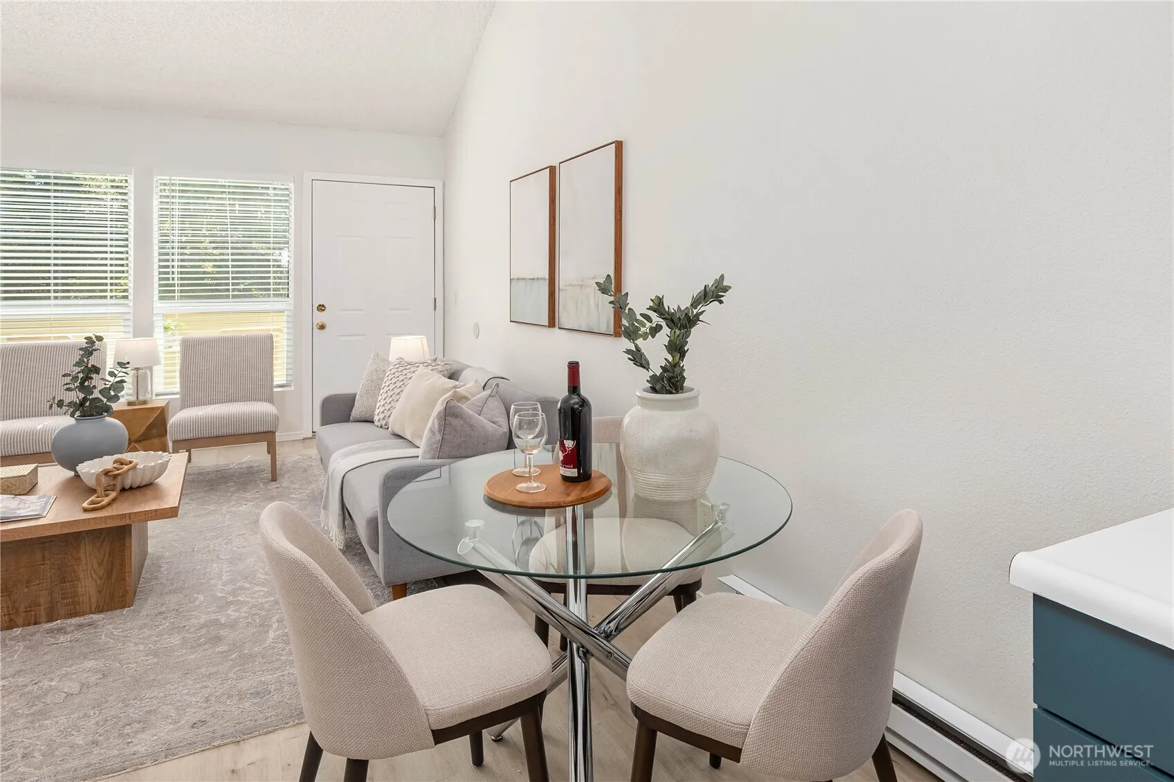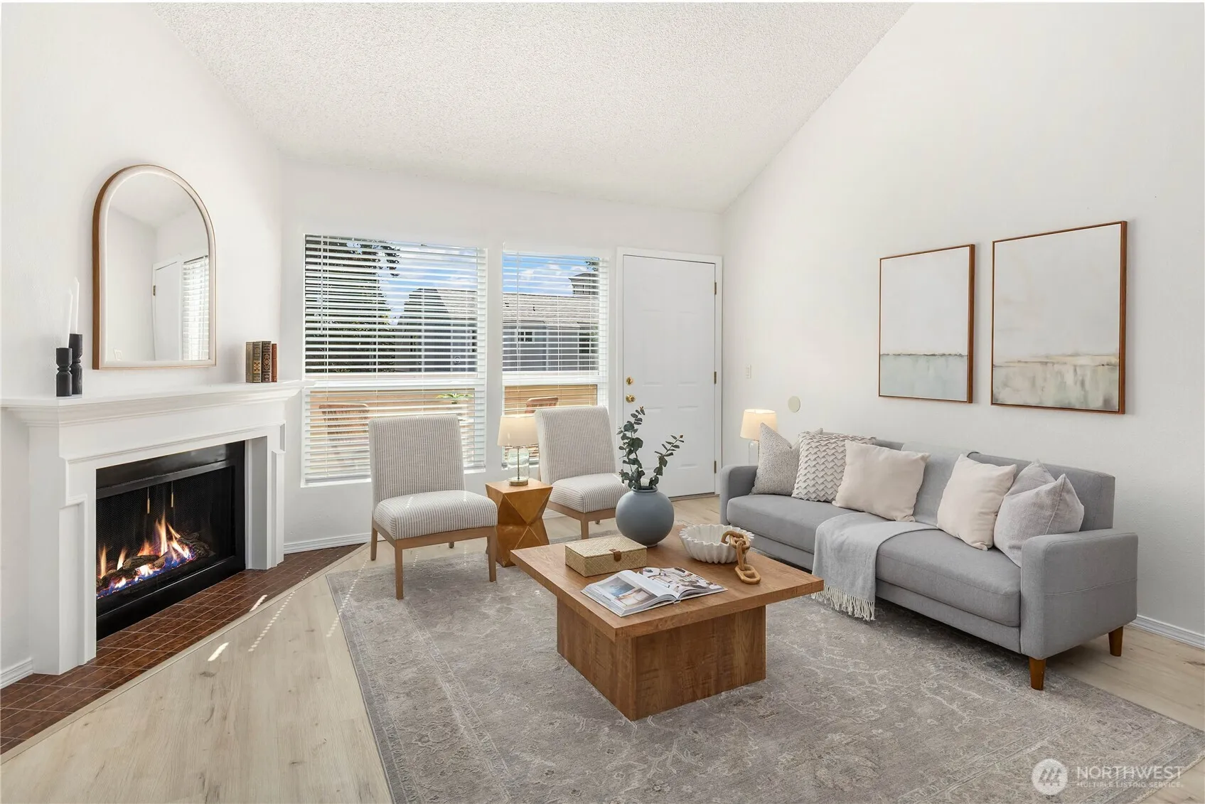 The “Park Place” of locations to enjoy the lifestyle, the energy and the ease of Juanita. Across the street from Juanita Park where Lake Washington beckons a dip, the Farmers Market starting in May, offers local fare & talents. Multiple restaurants and shops encourage lingering. This is the community you have yearned for. Welcome to Juanita Bay Townhomes, a small enclave of 30 homes, on the home stretch of a full exterior rebirth-new siding, windows, roof, gutters & decks. Inside a loft vibe with vaulted ceilings & loads of light floods in. Two bedrooms & two baths, with a separate office niche offer flexibility. Freshly painted with newer LVP flooring throughout, wood burning fireplace & a private deck to enjoy the sunsets. Updated kitchen with new stainless appliances. White on white full bathrooms with new vanities. This checks all the boxes -come see!