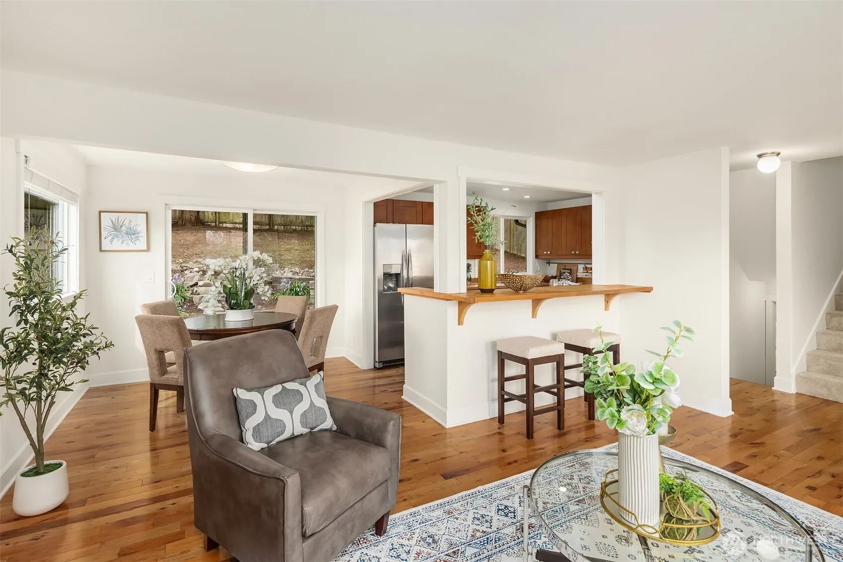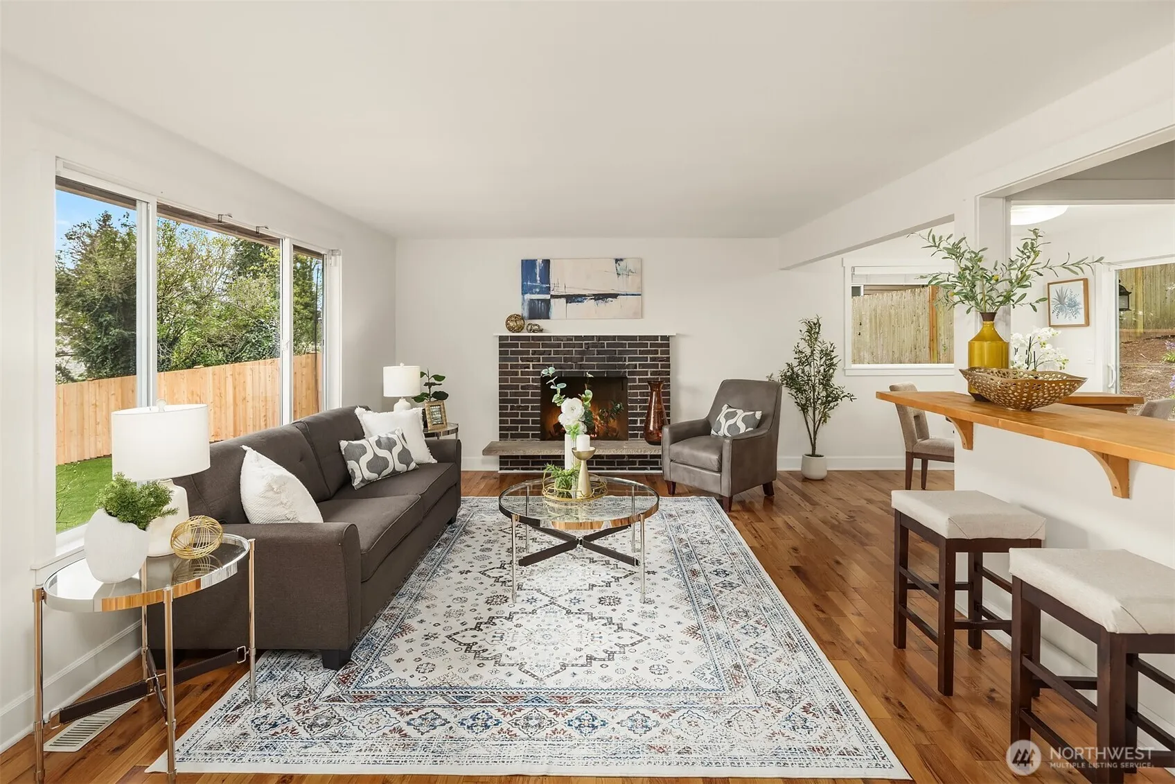 Beautiful, light-filled and move-in ready home in desirable lower Finn Hill! Freshly painted with thoughtful updates, this home offers a warm, inviting open layout ideal for everyday living and entertaining. The bright living room features large picture windows and a cozy fireplace, flowing seamlessly into the dining area and charming kitchen with ample cabinetry, great counter space, eating bar, and all new appliances. Sliding doors connect to spacious outdoor patios. Three comfortable bedrooms offer flexibility for guests or home office. Enjoy the spacious backyard with lovely trees and plenty of room to play. Close to The Village at Totem Lake, I-405, with easy commutes to Redmond, Bellevue, Seattle, and LWSD schools!