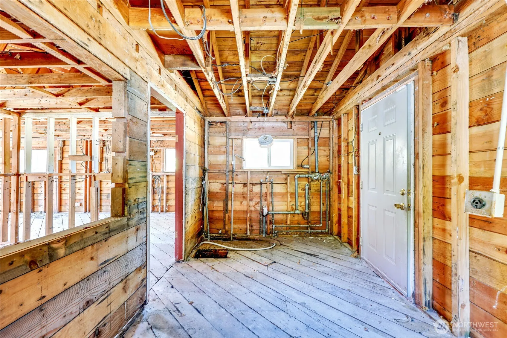 Investors! Contractors! Developers! Opportunity for fix & flip, fix & hold, or develop! A flat .50 acre lot in the Kingston UGA zoned Urban Medium Residential (10-30 DU/Ac), 3 minutes to the Kingston ferry terminal. Property consists of an 1168sf home gutted to the studs (flood, professional restoration by ServPro), a 768sf detached garage/shop, a 240sf shed & an attached 2 car carport. Property is all flat, cleared & usable. Potential to add one or more ADUs with Kitsap Co’s Pre-approved Additional Dwelling Unit Program? See the county website for preapproved plans. This is an As Is sale, buyer to verify all.
