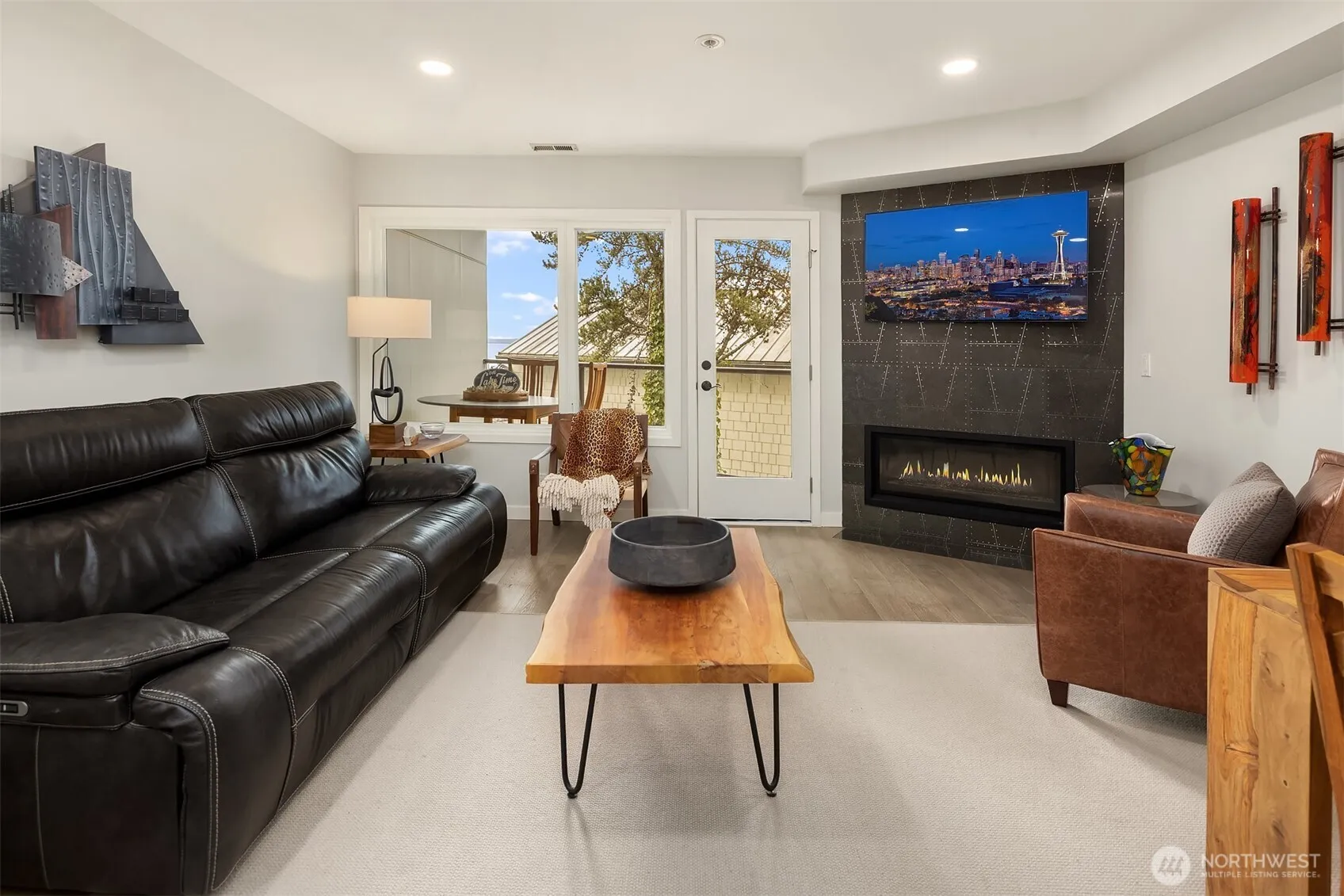 LAKE VIEW WATERFRONT RETREAT ~ Scenically poised on the shores of Juanita Bay in Kirkland’s newly updated Rose Pointe Condos, this contemporary oasis dazzles with stunning new high-end modern finishes, open concept bi-level layout & tranquil lakeside views! Turnkey move-in ready luxury featuring over $150k+ in quality upgrades – Pella windows, lavish tiled baths, wide-plank hardwoods, upscale millwork, artisan hardware, custom lighting, designer paint, solid core doors & so much more. Showcase kitchen with Calacatta quartz counters, bold full-height tile backsplash, gas cooktop & premium appliances opens to spacious living & dining room with floor-to-ceiling linear gas fireplace & wall-to-wall windows overlooking covered view balcony. Primary suite features breathtaking spa-inspired 5-piece bath with heated tile floors & romantic lanai. Sprawling private beachfront with outdoor lounge & water sport storage. A quaint 15-unit gated building with secure parking garage, elevator & bonus storage room. Dream location with 22-acre Juanita Beach Waterfront Park at your doorstep & vibrant downtown Kirkland just moments away!
