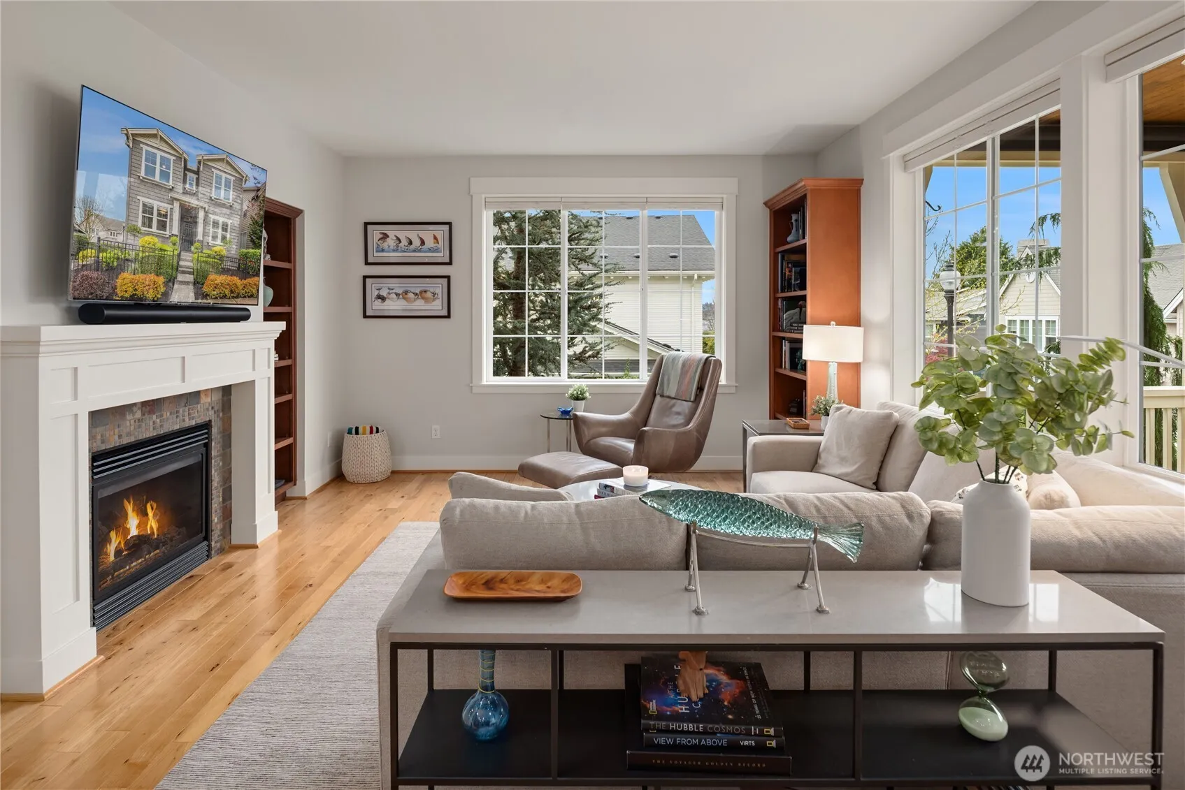 I’ve been reimagined for the way you actually live—elevated, effortless, and always chasing the view. Shimmering water views framed by a territorial forefront just beyond my windows and a fresh, design-forward feel throughout, I bring more light, more calm, and a little more wow to everyday living. Step inside and exhale with my reimagined front happy hour room cozy for casual encounters and catch ups! My open, airy layout is filled with natural light and walls of windows that bring the outside in. My living spaces flow seamlessly, anchored by a cozy fireplace and a connection to the outdoors that makes every moment feel easy. At my heart, the kitchen is sleek, spacious, and ready for anything—morning coffee, dinner parties, or hosting with style. It opens to a sunlit dining area and a private deck where indoor-outdoor living comes naturally, complete with a view and timeless sunsets. Upstairs, my primary suite is a serene retreat with water views, an updated ensuite bath, and a generous walk-in closet. Additional bedrooms offer flexibility for guests or work, while a versatile lower-level space adapts to your needs with an additional bedroom and private office. Ample storage, a spacious garage, and low-maintenance living. Community parks and tons of private green space that you don’t have to landscape seal the deal! I keep life simple—so you can focus on soaking it all in.