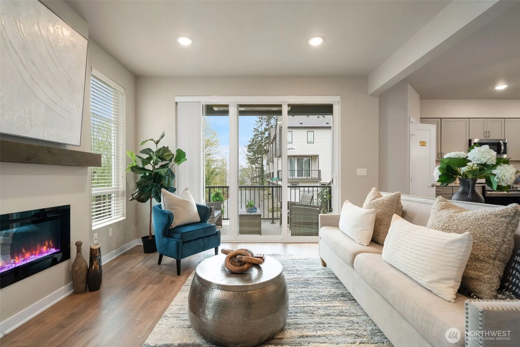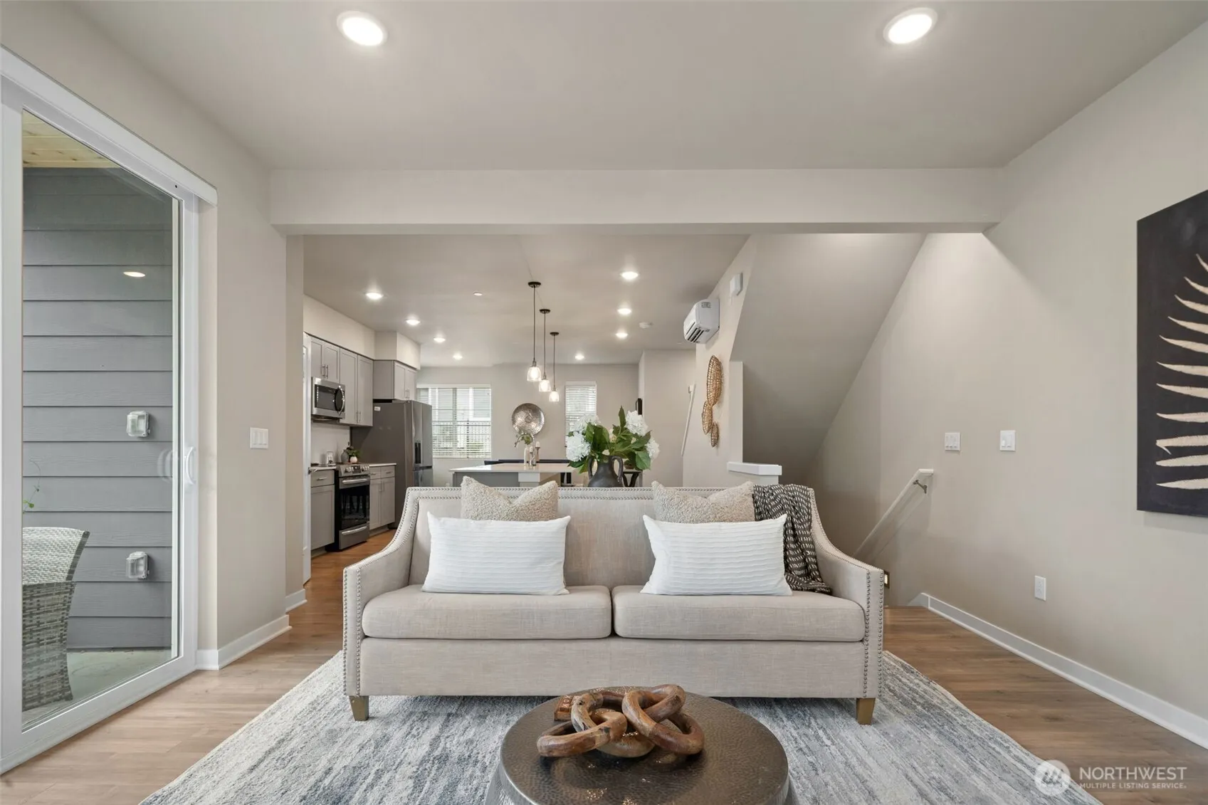 Tucked at the end of a quiet cul-de-sac, this well-designed 2023 corner townhome offers modern living just moments from the heart of Kenmore—local shops, farmers market, Lake Washington, and the Burke-Gilman Trail. Move-in ready with thoughtful upgrades, it combines clean design with everyday functionality in a highly convenient location. The light-filled 4-bedroom, 3.5-bath layout features an open-concept main level where the kitchen, dining, and living areas connect seamlessly—ideal for both daily living and entertaining. Large windows bring in natural light throughout, highlighting modern finishes and a bright, open feel. The kitchen centers the space with a generous quartz island, sleek appliances, and ample room to gather. The primary suite is positioned for privacy and includes a well-appointed en-suite bath. Additional bedrooms offer flexibility for guests, work-from-home, or other needs. Custom closet systems in two bedrooms provide added organization, and A/C ensures year-round comfort. Additional highlights include a finished garage with upgraded flooring and built-in storage, along with a private outdoor space for relaxing or dining. With newer construction, smart upgrades, and easy access to parks, trails, dining, and Kenmore’s growing downtown—as well as Seattle, Kirkland, Bothell, and Woodinville—this home offers a balanced mix of style, comfort, and location.