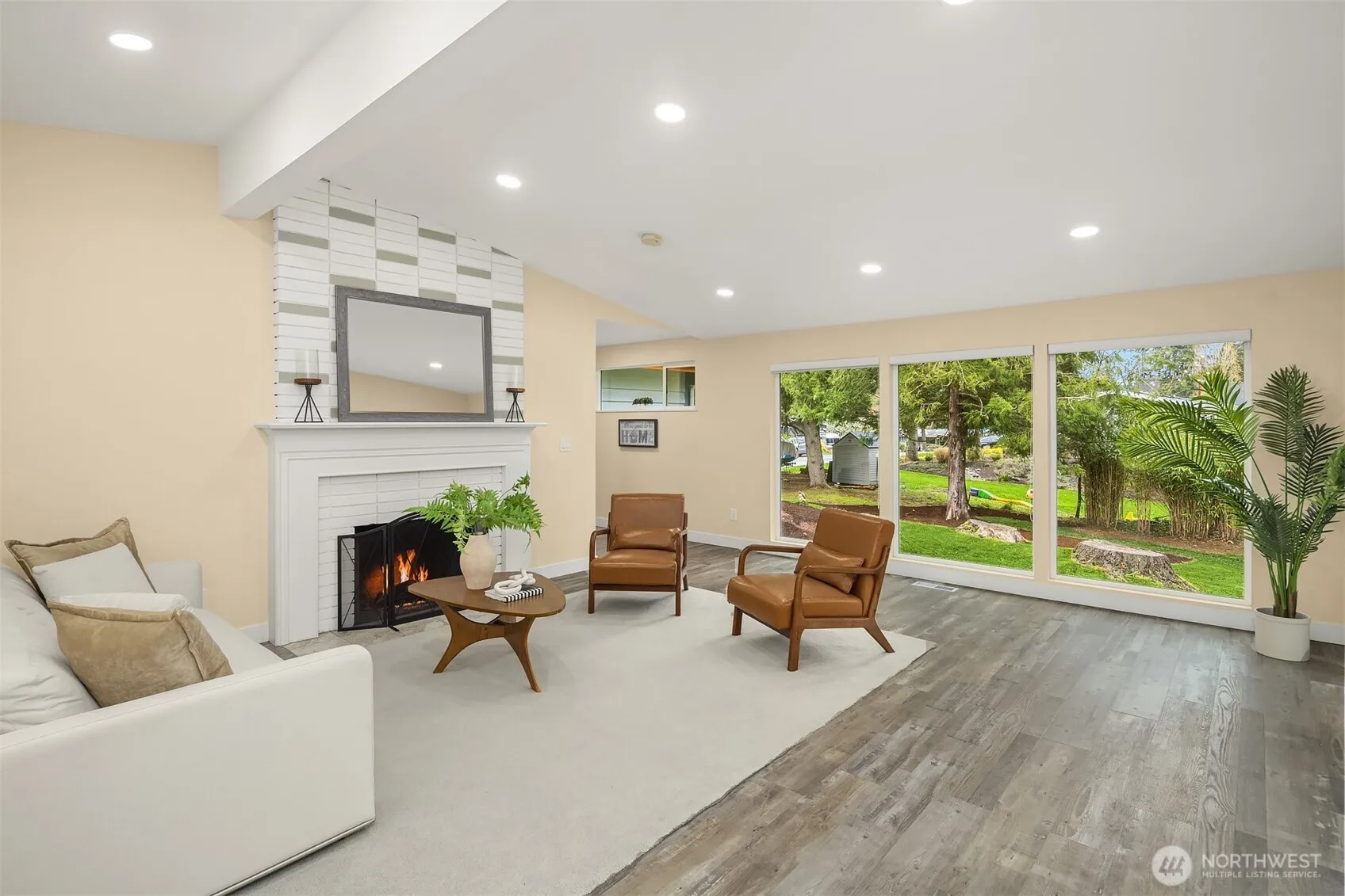 Experience this stunningly renovated mid-century modern home in the heart of Kenmore, where timeless design meets contemporary living. This 3-bedroom, 2.25-bath residence has been thoughtfully updated throughout with quality craftsmanship and stylish finishes. The light-filled living room creates a warm, inviting atmosphere, while the open-concept layout flows seamlessly into a remodeled gourmet kitchen featuring newer cabinetry, quartz countertops, tile backsplash, and stainless steel appliances—perfect for everyday living and entertaining. All three bedrooms are conveniently located on the main level, including a spacious primary suite with a private ensuite bath. Each bathroom has been tastefully updated with sleek, modern finishes. The lower level adds versatility with a large bonus room or potential 4th bedroom with storage—ideal for a media room, home gym, or office. Outdoor enthusiasts will love the proximity to Saint Edward State Park with miles of trails, biking, and Lake Washington beach access. Nearby Log Boom Park offers a waterfront retreat with a pier, playground, kayak access, and stunning sunsets. Located in the highly regarded Northshore School District, this home offers both comfort and convenience—just minutes to Downtown Kenmore, Town Center, library, farmers markets, shopping, dining, and Inglewood Golf Course. Future light rail expansion adds long-term value, making this an exceptional opportunity for homeowners and investors alike.