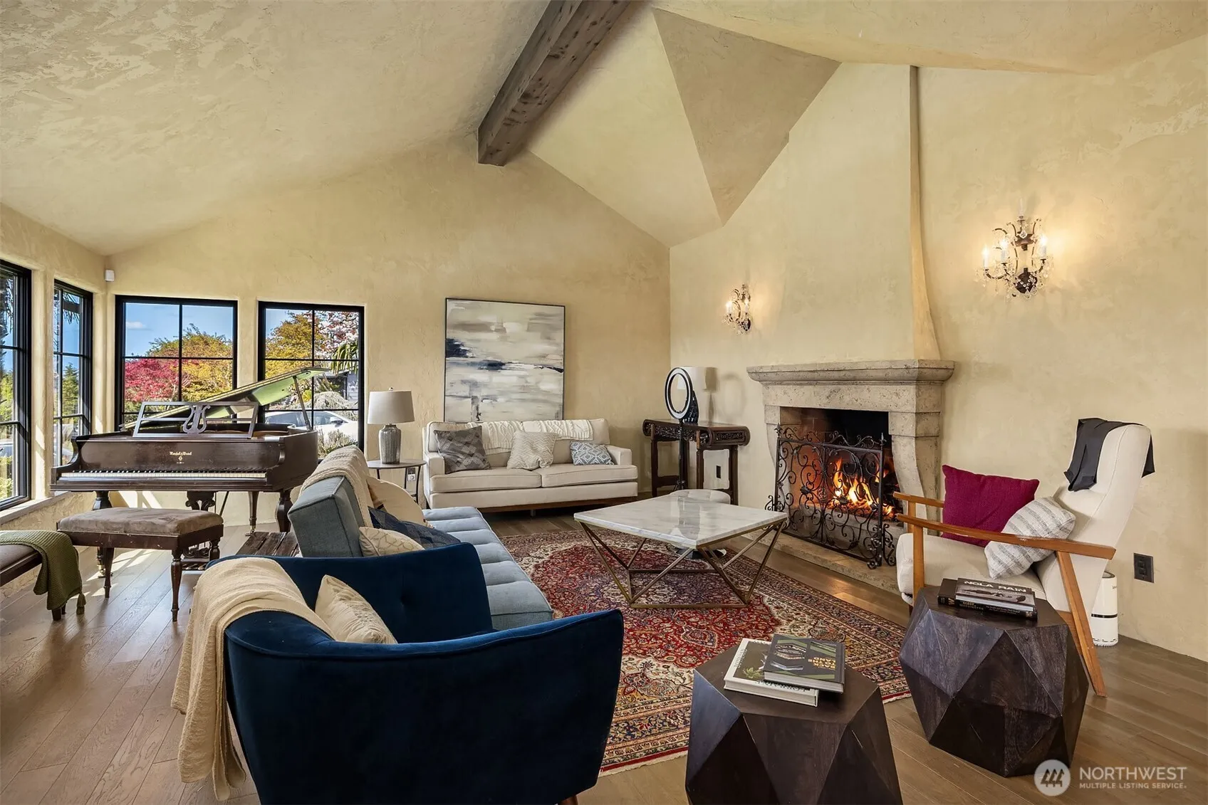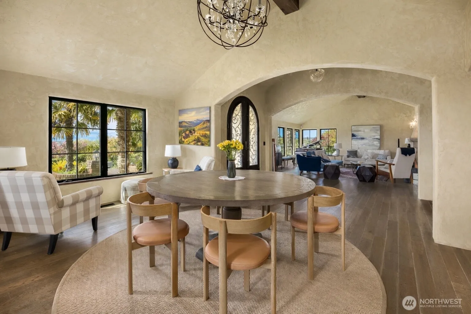 Located on one of Mercer Island’s most coveted streets, this exceptional one-level home set off the street captures sunny western exposure, breathtaking sunsets, and sparkling views of the Seattle skyline – all without any power lines. Thoughtfully reimagined in 2015, its Mediterranean-inspired design showcases exquisite finishes and timeless style throughout. Entertain effortlessly in expansive open living spaces highlighted by dramatic timber-beamed ceilings, seamlessly blending warmth and sophistication. Designed for year-round indoor-outdoor living, the home invites both quiet relaxation by the fire and lively gatherings around the island-style gourmet kitchen.Summer comes alive here—host unforgettable poolside parties with a bonus lounge that opens to the patio, pool, and spa. Dine alfresco under the stars or gather around the fire pit on a second patio for s’mores and conversation. A second private patio makes multi generational living easy. Four versatile bedrooms—including one with a private entrance—offer flexible living, work, or guest options.Set on a peaceful, flat, and highly walkable street, you’re just moments from Pioneer Park, top-rated schools, and South End favorites like QFC, Starbucks, and local dining. This is effortless island living at its finest.