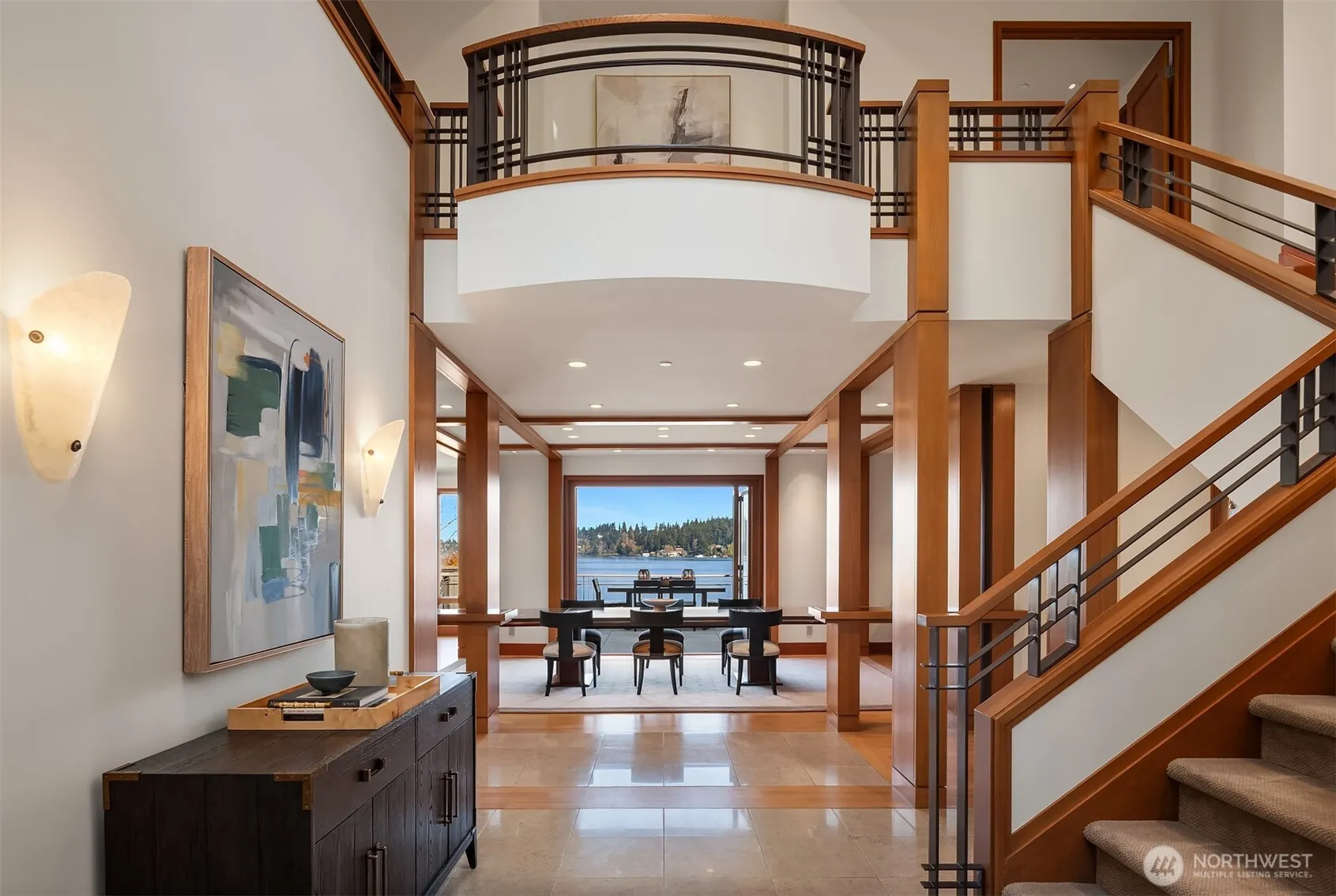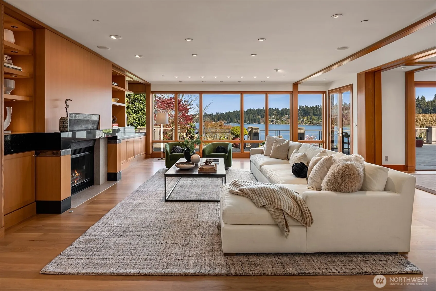 Perched in a private setting on the Island’s coveted north end, this impressive Northwest Contemporary embraces lake life with 96 feet of waterfront, private dock and was completely rebuilt in 2002. The warm & inviting home was designed for gathering and entertaining with clean lines, an open floor plan and spacious formals all showcasing the sparkling lake views. A window wall opens to multiple outdoor living spaces including a flat lawn at the water’s edge. The generous eat-in kitchen includes an adjacent TV room and built-in work station. All 4 bedrooms are ensuite including a desirable guest suite on the main. A handsome office is also on the main. The lower level features a rec room, kitchenette, exercise room and bath. A huge added bonus: an elevator services all floors! This waterfront retreat is just minutes from fabulous dining and retail in the Island core, as well as Bellevue and Seattle.